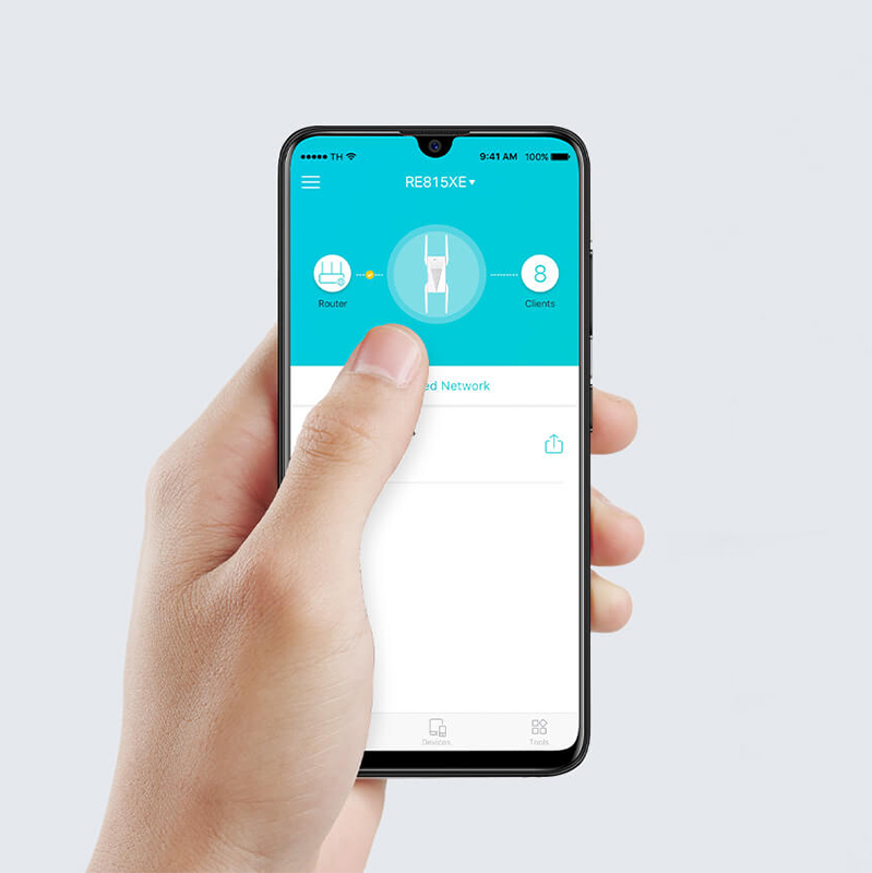 Głównym zastosowaniem RE815XE jest rozszerzenie zasięgu już istniejącej sieci bezprzewodowej. Jest kompatybilny z większością routerów dostępnych na rynku, ale najlepiej sprawdzi się w połączeniu z innym rozwiązaniem korzystającym z Wi-Fi 6E. Duży zasięg zapewniają 4 zewnętrzne anteny dookólne oraz 6 wzmacniaczy FEM wysokiej mocy. Urządzenie wspiera funkcję Beamforming, która umożliwia kształtowanie wiązki mające na celu skierowanie jej w stronę użytkownika.