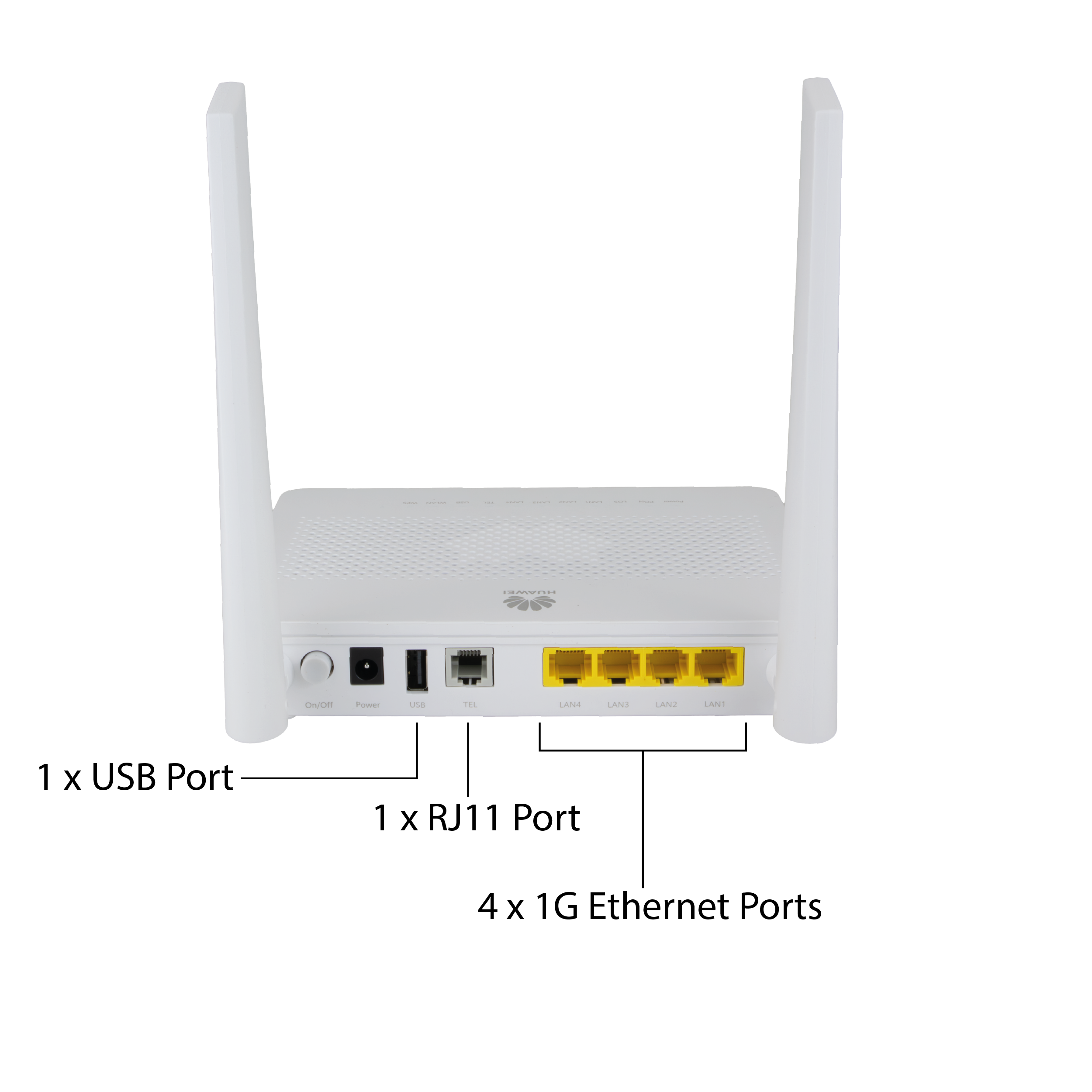 ONT posiada 4 porty 1G Ethernet (10/100/1000 Mb/s) pozwalające abonentom na pełne skorzystanie z pakietów do 1 Gb/s. Dodatkowo posiada port RJ11 umożliwiający oferowanie telefonii VoIP i port USB, który można wykorzystać do stworzenia serwera FTP czy serwera dzielenia plików / drukarek w oparciu o SAMBA.