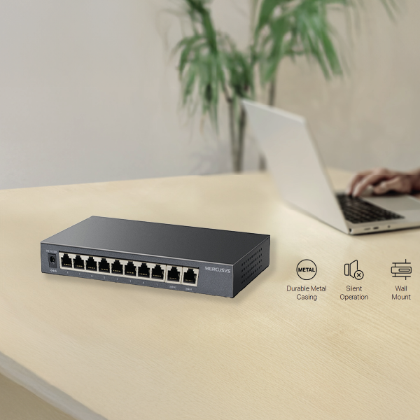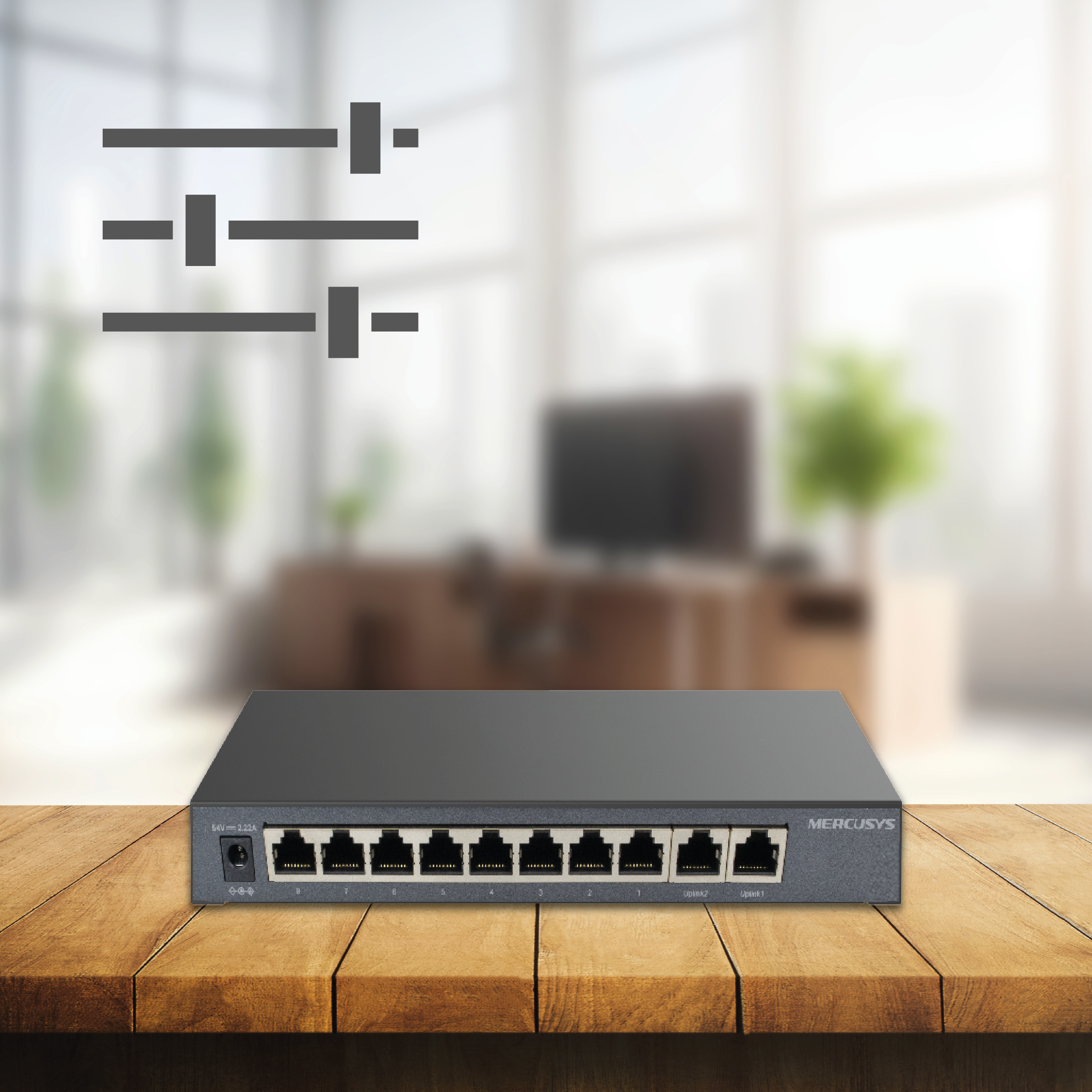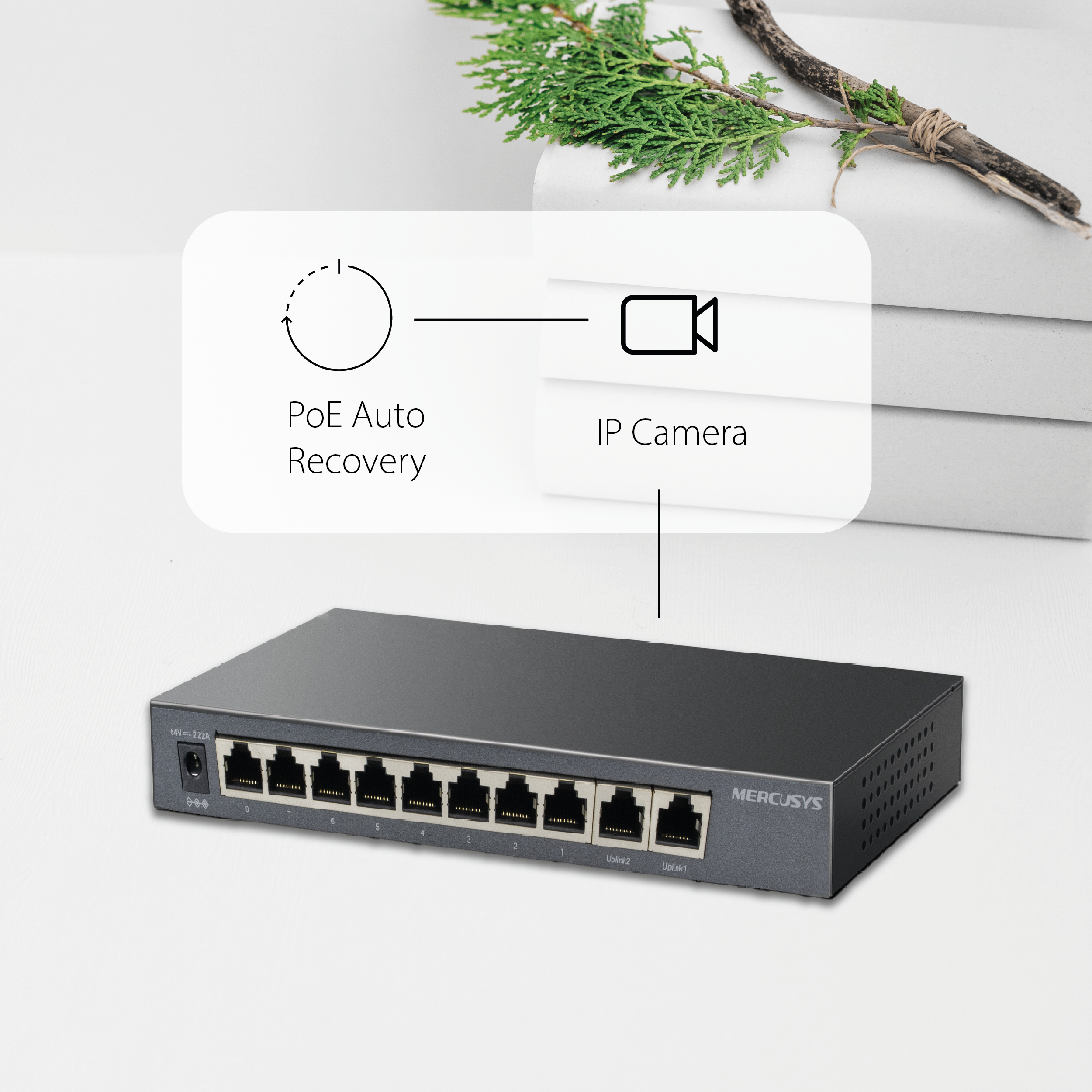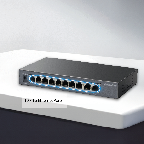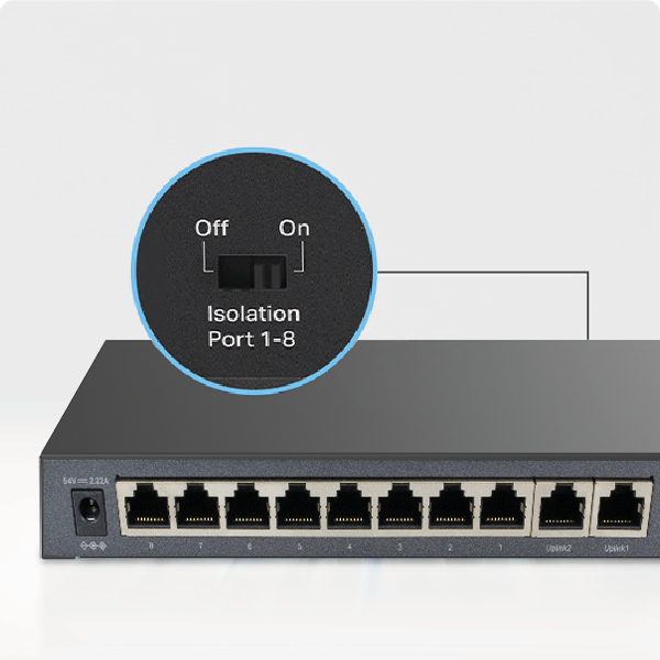 Switch został wyposażony w 10 gigabitowych portów Ethernet (10/100/1000 Mb/s). Dzięki temu jego funkcjonalność nie jest ograniczona do stosowania głównie w systemach monitoringu, sprawdzi się również podczas podłączania urządzeń wyposażonych w gigabitowe porty, np. punktów dostępowych.