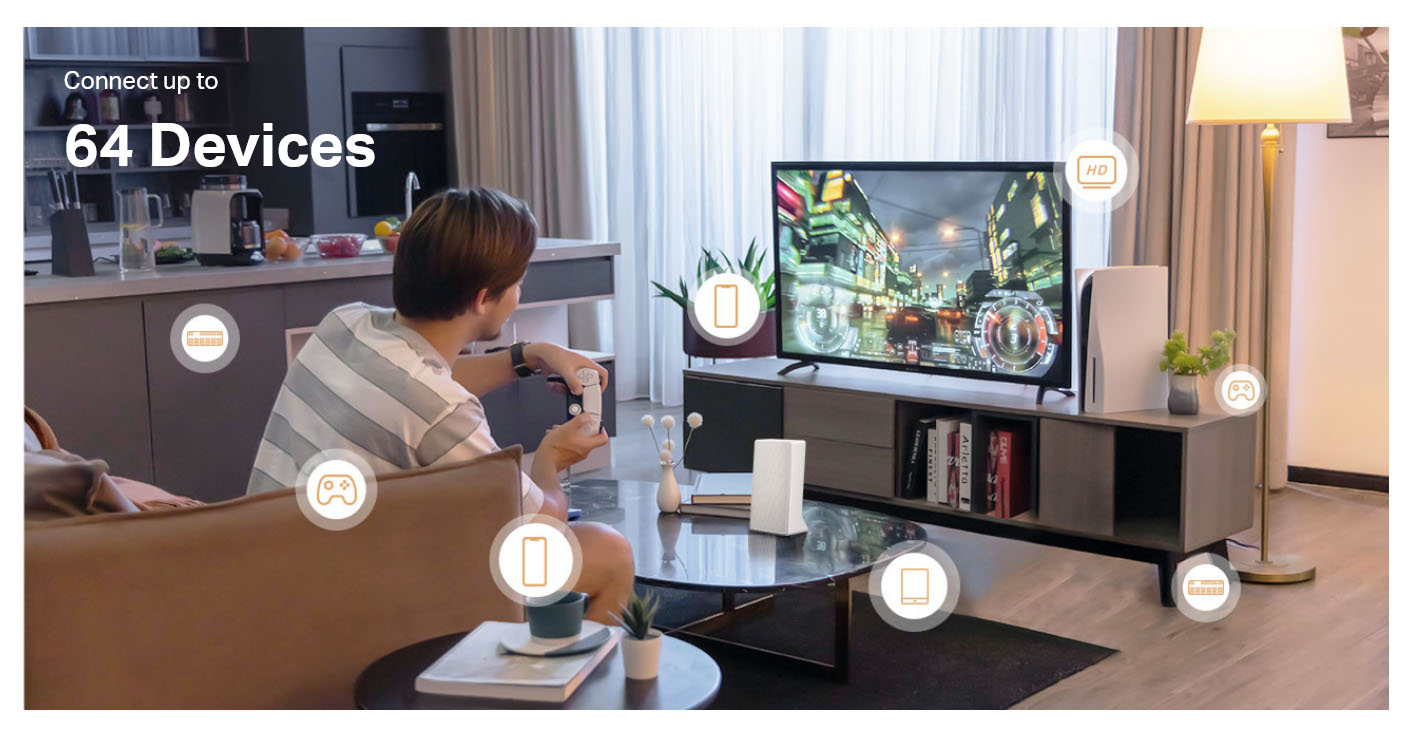 Router może transmitować sieć bezprzewodową Wi-Fi 5, obsługuje protokoły IEEE 802.11 b/g/n w paśmie 2,4 GHz i IEEE 802.11 a/n/ac w 5 GHz. Maksymalna teoretyczna przepustowość Wi-Fi wynosi odpowiednio 300 Mb/s w 2,4 GHz oraz 867 Mb/s w 5 GHz. Bez problemu możesz rozszerzyć połączenie z transmisją mobilną na więcej urządzeń, maksymalna liczba podłączonych klientów wynosi aż 64.