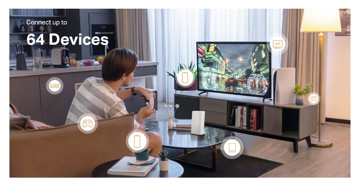 Router może transmitować sieć bezprzewodową Wi-Fi 5, obsługuje protokoły IEEE 802.11 b/g/n w paśmie 2,4 GHz i IEEE 802.11 a/n/ac w 5 GHz. Maksymalna teoretyczna przepustowość Wi-Fi wynosi odpowiednio 300 Mb/s w 2,4 GHz oraz 867 Mb/s w 5 GHz. Bez problemu możesz rozszerzyć połączenie z transmisją mobilną na więcej urządzeń, maksymalna liczba podłączonych klientów wynosi aż 64.