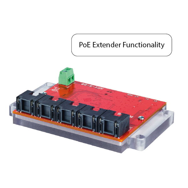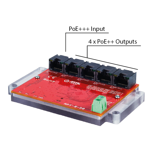 5 portów 1G Ethernet, wejście PoE+++, 4 wyjścia PoE++