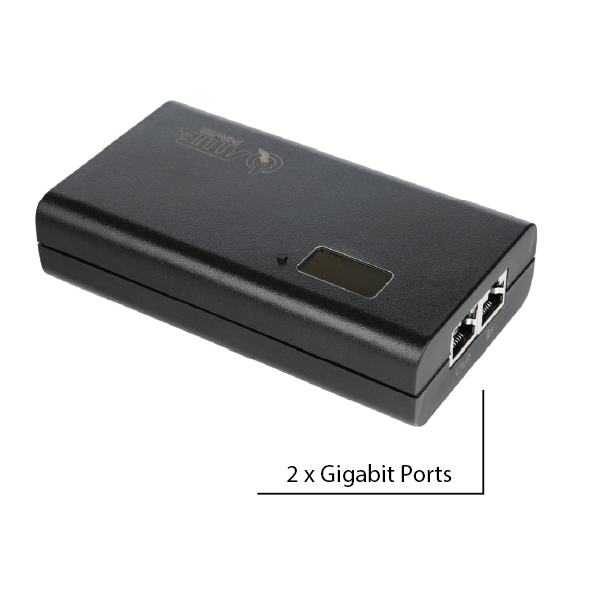 Oferowany produkt to zasilacz PoE, do którego na wejściu podłącza się zasilanie sieciowe AC (190 - 260 V AC) i dane. Na wyjściu urządzenia podaje dane i zasilanie za pośrednictwem standardowego kabla Ethernet, na odległość do 100 m. Zasięg jest w dużej mierze uzależniony od jakości zastosowanego okablowania. Dzięki gigabitowym portom zasilacz sprawdzi się podczas podłączania urządzeń, które potrzebują przepustowości 1 Gb/s