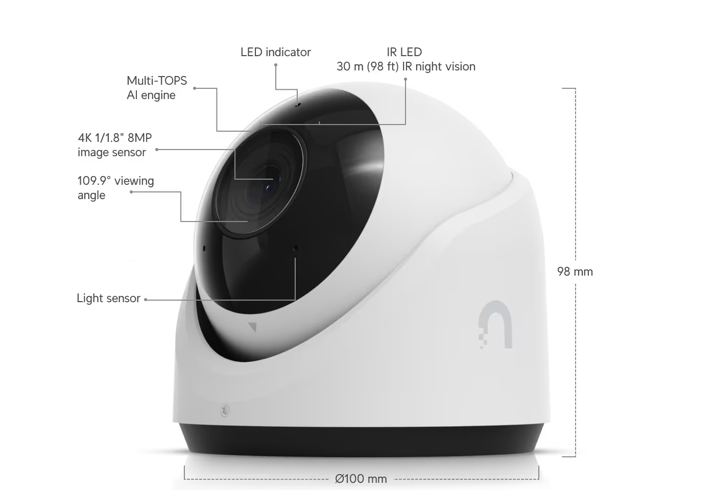 Urządzenie wspiera zaawansowane funkcje AI oferowane przez UniFi Protect. Najważniejsze z nich to rozpoznawanie twarzy, rozpoznawanie tablic rejestracyjnych oraz inteligentne wykrywanie zwierząt, ludzi i pojazdów. Oprócz tego kamera obsługuje podstawowe funkcje, takie jak wykrywanie ruchu i przekroczenia linii. Możliwość automatycznego odczytywania tablic rejestracyjnych i rozpoznawania twarzy bardzo pomaga podczas późniejszego przeglądania monitoringu, umożliwia prowadzenie precyzyjnego śledzenia danych osób / obiektów.