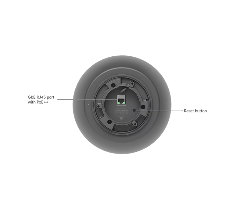 Urządzenie jest wyposażone w 1 port 1G Ethernet (10/100/1000 Mb/s), który jednocześnie służy za wejście zasilania PoE++ (802.3bt). Maksymalny pobór mocy wynosi 51 W, zasilania nie możesz doprowadzić w inny sposób niż poprzez PoE.