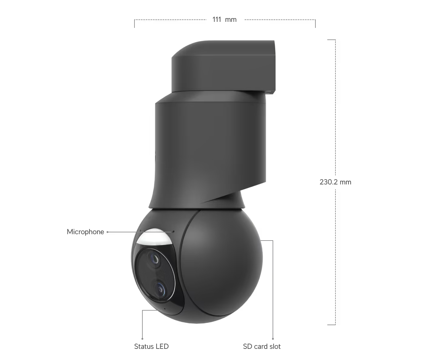 Kamera wspiera funkcję PTZ - może obracać się w zakresie 350° w poziomie i w zakresie 100° w pionie. Dzięki temu zawsze jest skierowana w najważniejsze miejsce. W połączeniu z inteligentnym wykrywaniem funkcja PTZ pozwala na precyzyjne i automatyczne śledzenie osób.
