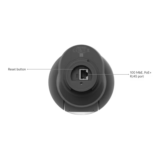 Urządzenie jest wyposażone w 1 port 100M Ethernet (10/100 Mb/s), który jednocześnie służy za wejście zasilania PoE+ (802.3at). Maksymalny pobór mocy wynosi 24,5 W, zasilanie nie możesz doprowadzić w inny sposób niż poprzez PoE.
