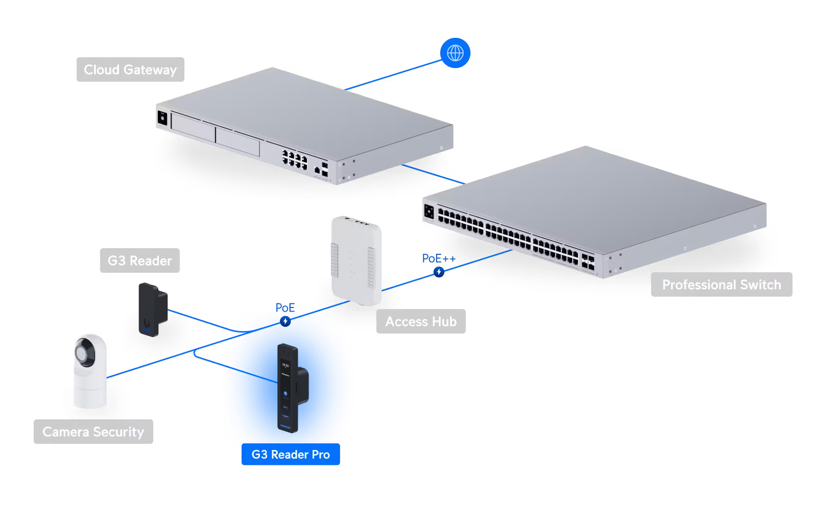 Oferowany produkt to czytnik przeznaczony do pracy w systemie UniFi Access. Nie posiada trybu standalone, może być wykorzystywany jedynie jako element całego systemu. Do pełnej funkcjonalności wymaga podłączenia z kompatybilnym hubem. UniFi Access to rozległa i ciągle rozbudowywana rodzina produktów dedykowana do zarządzanie dostępem do danych pomieszczeń i budynków.