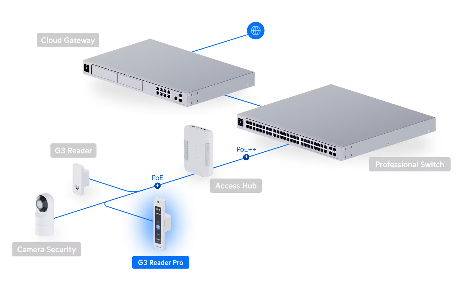 Oferowany produkt to czytnik przeznaczony do pracy w systemie UniFi Access. Nie posiada trybu standalone, może być wykorzystywany jedynie jako element całego systemu. Do pełnej funkcjonalności wymaga podłączenia z kompatybilnym hubem. UniFi Access to rozległa i ciągle rozbudowywana rodzina produktów dedykowana do zarządzanie dostępem do danych pomieszczeń i budynków.