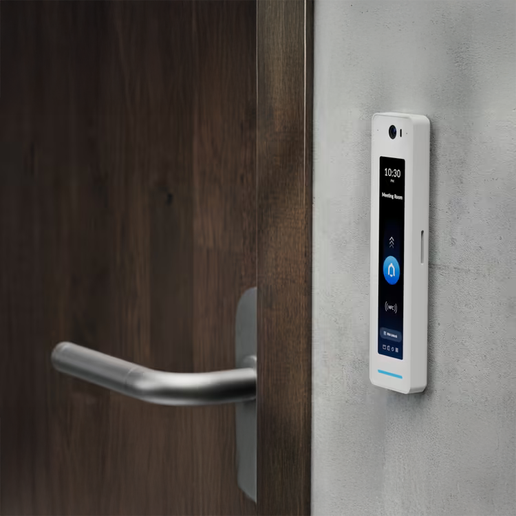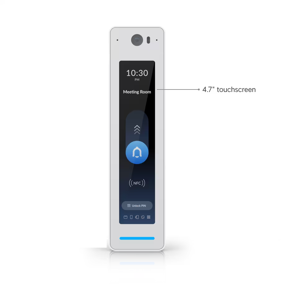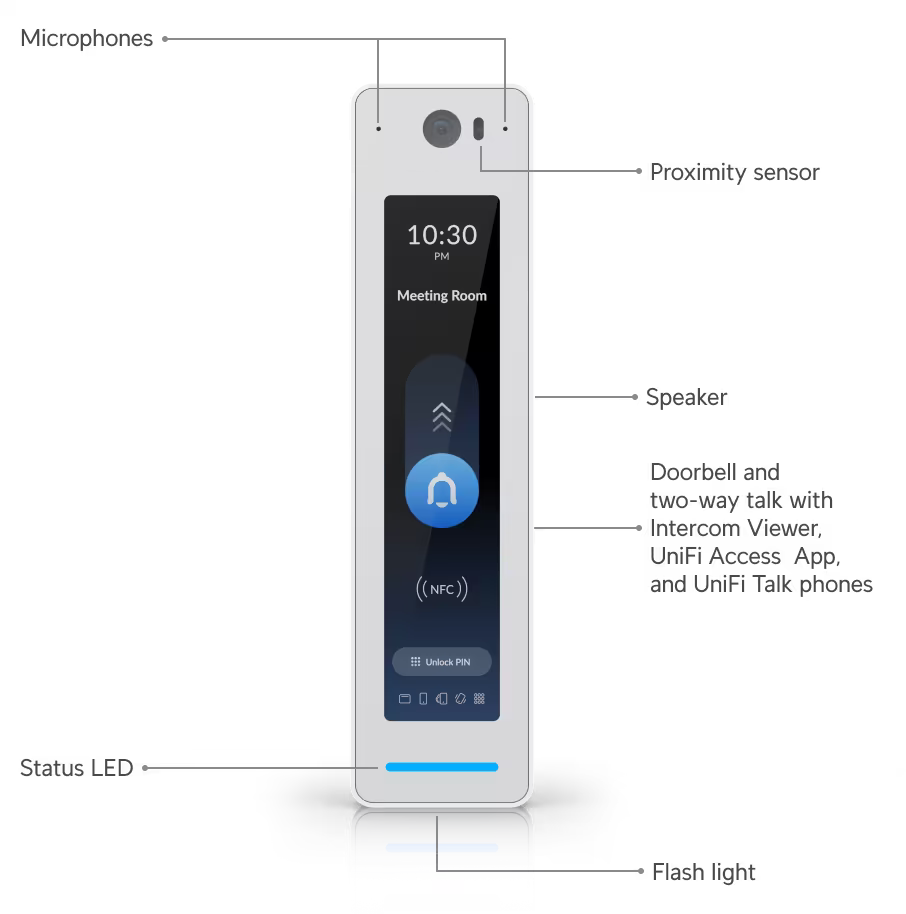G3 Reader Pro posiada wbudowaną kamerę, mikrofon oraz głośnik. Pozwala prowadzić dwukierunkową komunikację głosową z podglądem obrazu, w podobny sposób jak w standardowych wideodomofonach. Rozmowę wywołaną z poziomu czytnika możesz odebrać w aplikacji UniFi Access, urządzeni Intercom Viewer lub telefonach z serii UniFi Talk. Następnie możesz otworzyć dane drzwi przed gościem.