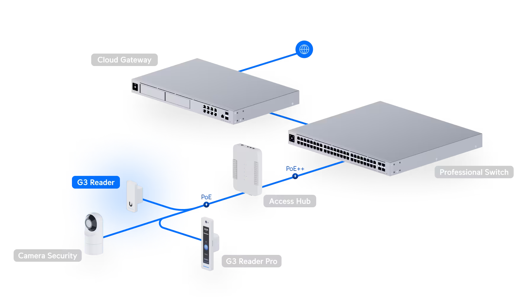 Oferowany produkt to czytnik przeznaczony do pracy w systemie UniFi Access. Nie posiada trybu standalone, może być wykorzystywany jedynie jako element całego systemu. Do pełnej funkcjonalności wymaga podłączenia z kompatybilnym hubem. UniFi Access to rozległa i ciągle rozbudowywana rodzina produktów dedykowana do zarządzanie dostępem do danych pomieszczeń i budynków.