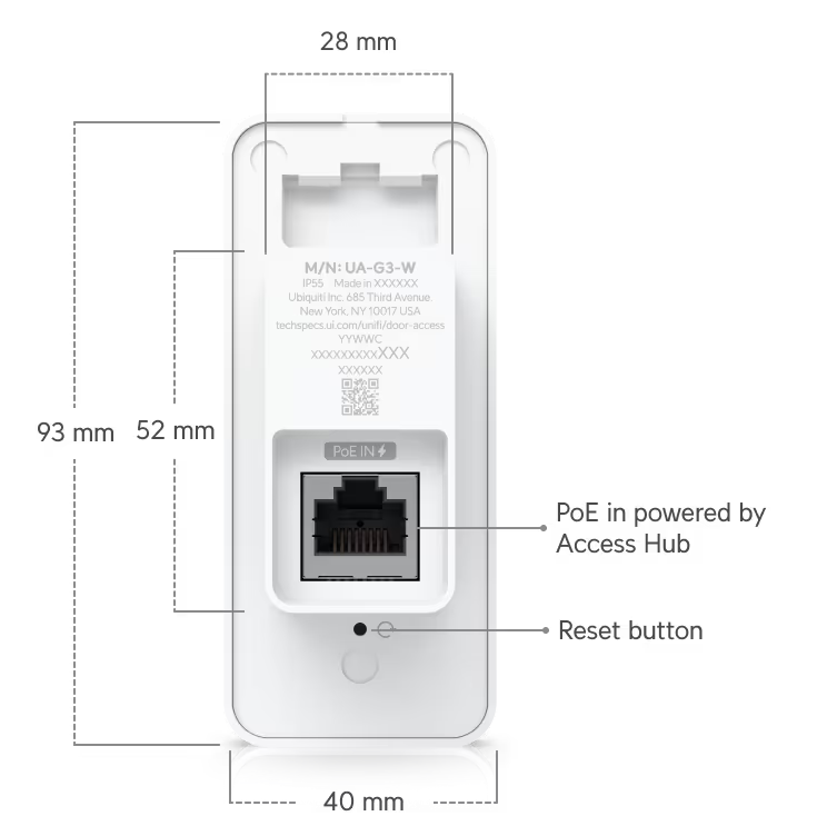Ubiquiti G3 Reader to czytnik przeznaczony do wykorzystania w systemie UniFi Access. Po podłączeniu do odpowiedniego huba umożliwia otwieranie drzwi i kontrolowanie dostępu do pomieszczenia. Urządzenie pozwala na korzystanie z Touch Pass (odblokowanie przez przyłożenie telefonu), kart NFC / keyfob lub aplikacji mobilnej. Jest to jeden z najprostszych czytników, bez możliwości prowadzenia komunikacji głosowej, sprawdzi się w biurach w pomieszczeniach, do których dostęp mają tylko pracownicy. Przy pomocy akcesoriów dołączonych w zestawie G3 Reader możesz zamontować na puszce elektrycznej / instalacyjnej, w sprzedaży dostępne są dodatkowe akcesoria montażowe. Urządzenie posiada 1 port fast Ethernet (10/100 Mb/s), który jednocześnie służy za wejście zasilania PoE (802.3af), zasilanie nie da się podłączyć w inny sposób.