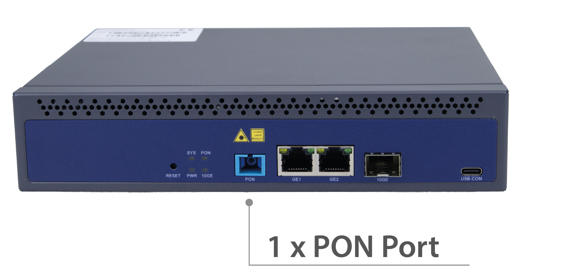 V1600GS-ZF posiada 1 port PON, do terminala możesz więc podłączyć maksymalnie 128 abonentów. Producent zastosował zintegrowany port typu SC/UPC, nie musisz dokupywać osobno wkładki SFP. Moc nadawcza wynosi około 7,5 dBm, a czułość odbioru do -32 dBm.