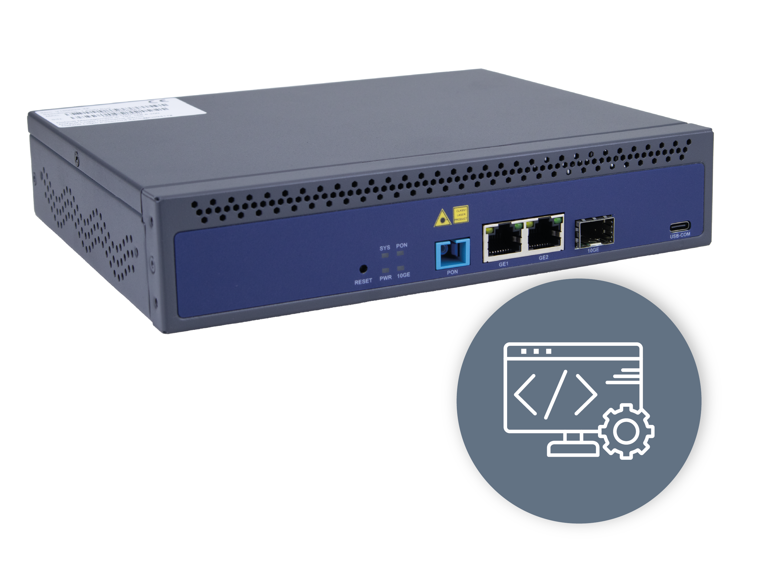 Oferowany produkt to terminal OLT przeznaczony do wykorzystania w sieciach GPON. Jest to urządzenie nadawcze, które pozwoli ci transmitować dane do abonentów. Zgodnie ze standardem przepustowość na port wynosi 2,5 Gb/s w stronę klienta i 1,25 Gb/s od klienta. Maksymalny split na port to 1:128.