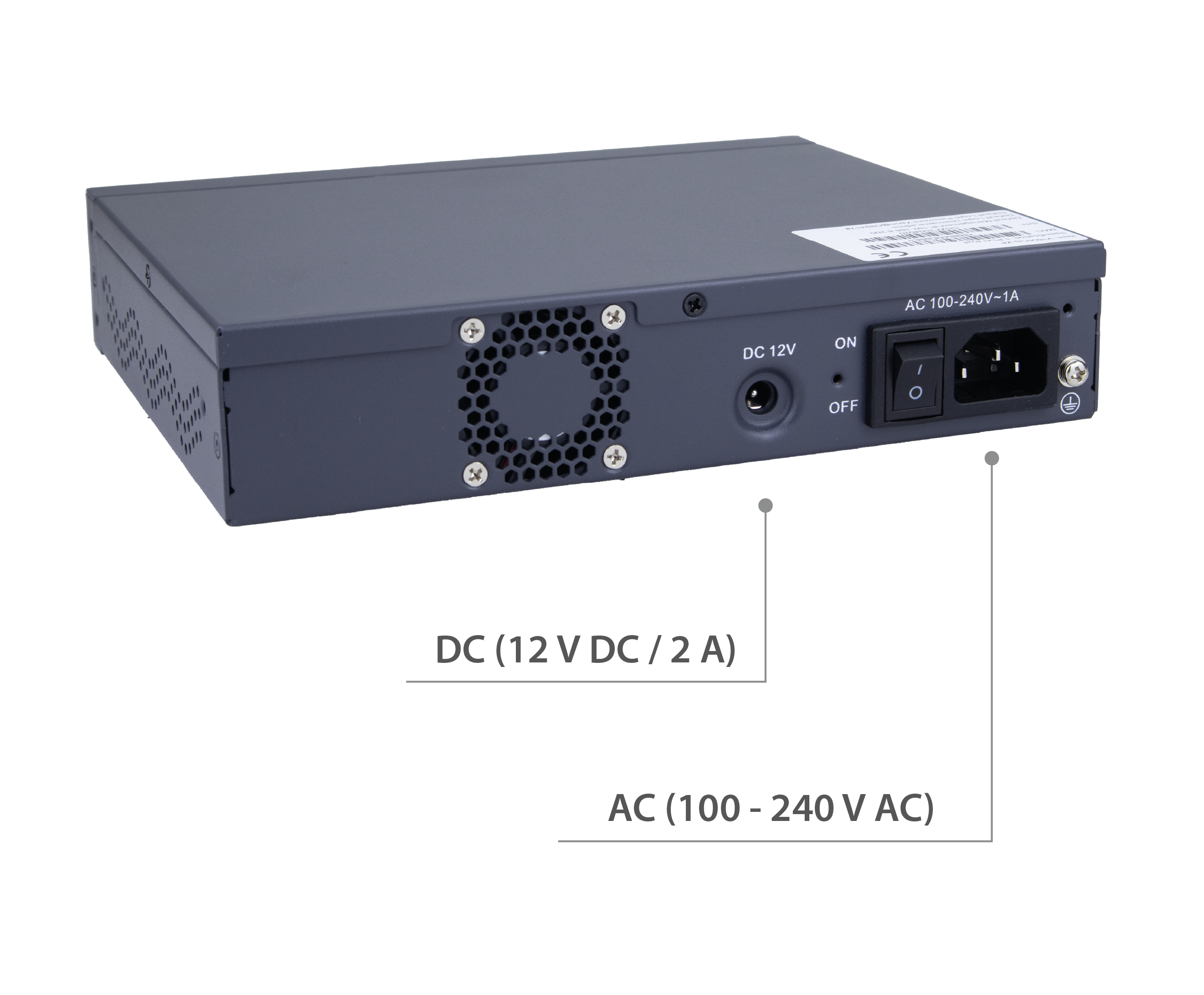 Dodatkową zaletą są dwa zintegrowane zasilacze. Możesz skorzystać z wejścia AC (100 - 240 V AC) lub DC (12 V DC / 2 A). Zasilacz AC ma standardowe złącze komputerowe, odpowiedni kabel znajdziesz w zestawie. Zasilacz DC posiada gniazdo 2,1 / 5,5 mm.