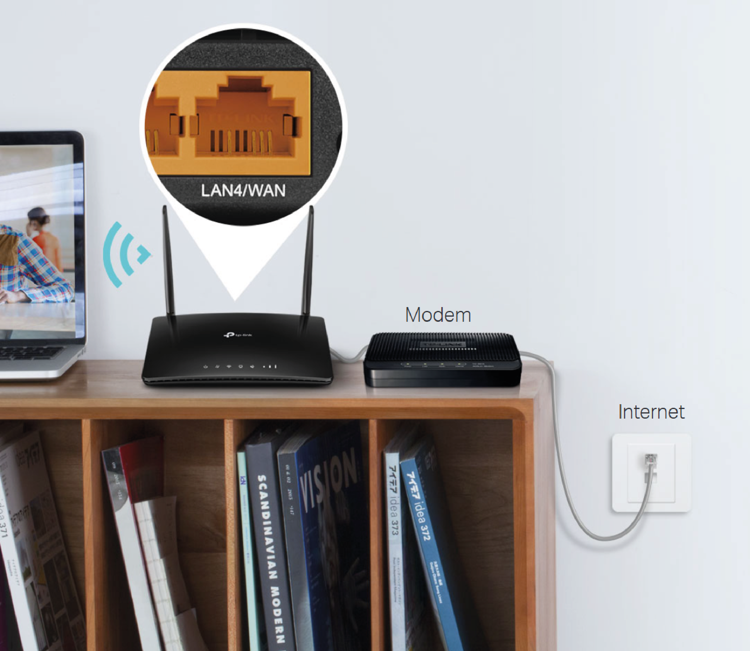 Archer MR402 jest wyposażony w port WAN/LAN, dlatego może pracować jako router zgodny z modemem kablowym, światłowodowym i DSL. W trybie routera bezprzewodowego połączenie 3G/4G działa jako łącze zapasowe, aby zapewnić stały dostęp do Internetu, gdy sieć główna ulegnie awarii.