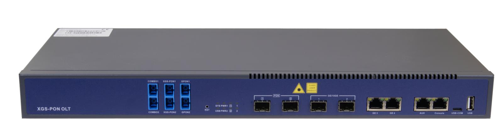 Oferowany produkt to terminal OLT (nadawczy) wyposażony w dwa porty PON typu Combo. Prowadzona jest na nich jednocześnie transmisja XG-PON oraz XGS-PON. Dzięki temu podłączając abonentów możesz skorzystać z terminala ONT w jednej z dwóch technologii, zależnie od pakietu, jaki mu oferujesz. XG-PON umożliwia uzyskanie przepustowości 10 / 2,5 Gb/s (do / od klienta), a XGS-PON symetrycznie 10 / 10 Gb/s. Split wynosi 1:256, ale producent sugeruje korzystanie maksymalnie z 1:128. W zestawie znajdziesz odpowiednie wkładki PON.