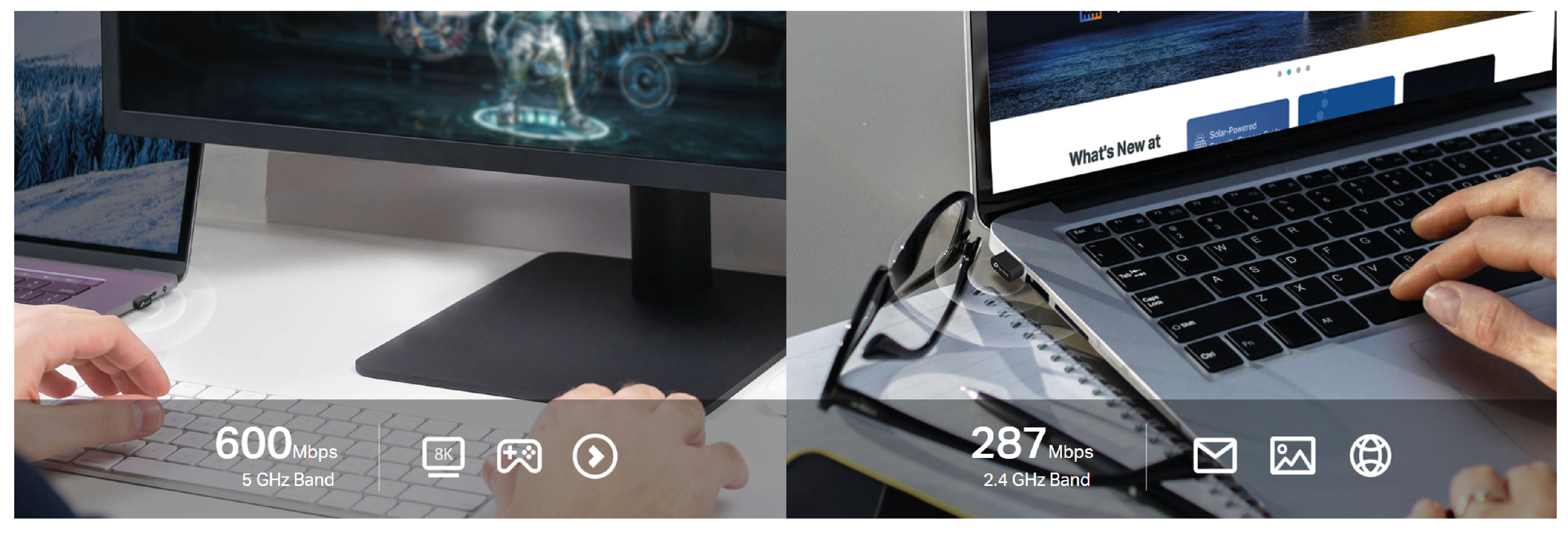AX900 zapewnia do 900 Mb/s w dwóch pasmach – 574 Mb/s (2,4 GHz) i 867 Mb/s (5 GHz). Dzięki technologiom Wi-Fi 6 (OFDMA, MU-MIMO, TWT) oferuje stabilne połączenia, mniejsze opóźnienia i lepszą wydajność przy wielu urządzeniach jednocześnie. Idealne rozwiązanie do streamingu, wideokonferencji i gier online.