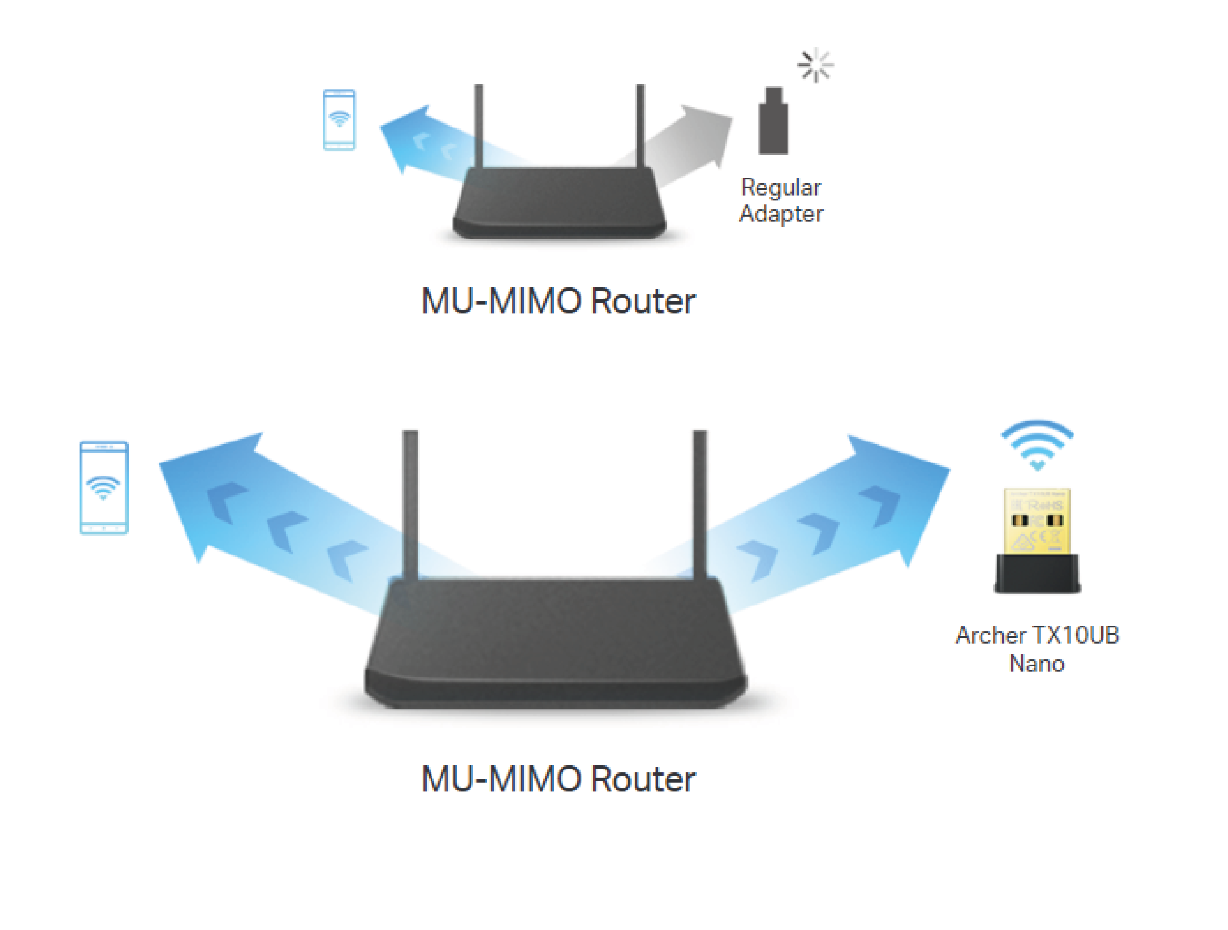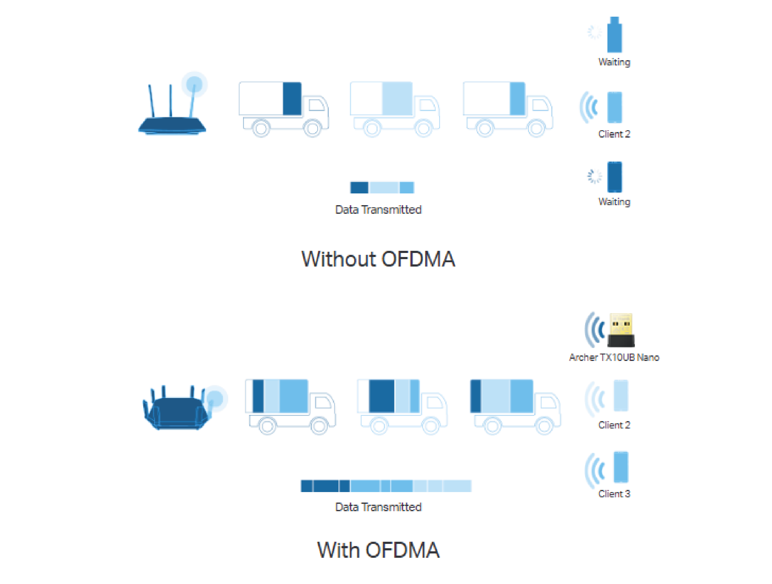Podczas działania z kompatybilnym routerem, Twój komputer może otrzymywać dane w tym samym czasie, co inne urządzenia korzystające z tego samego strumienia. Oznacza to praktycznie nieistniejące opóźnienia w grach i podczas strumieniowania wideo.