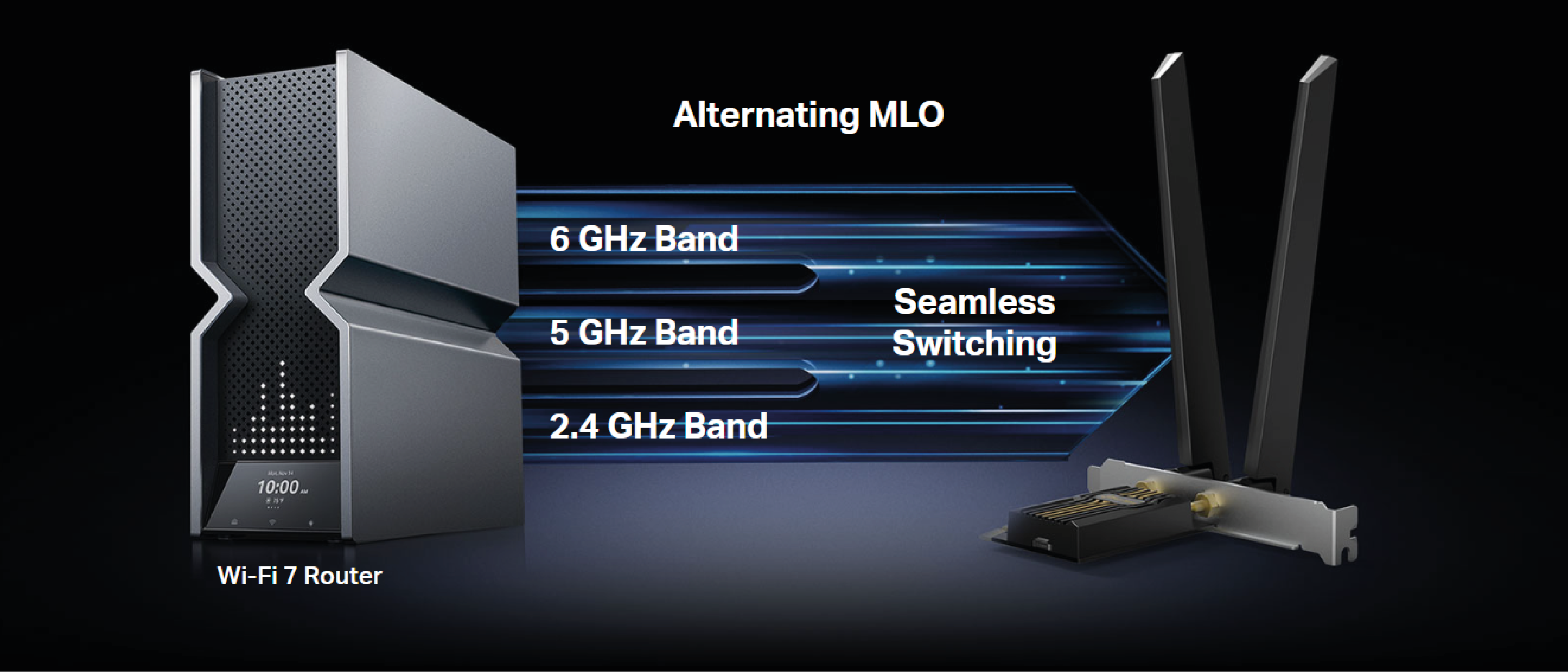 Multi-Link Operation (MLO) – jednoczesne wykorzystanie wielu pasm transmisyjnych, co redukuje opóźnienia, zwiększa stabilność i poprawia ogólną wydajność połączeń.