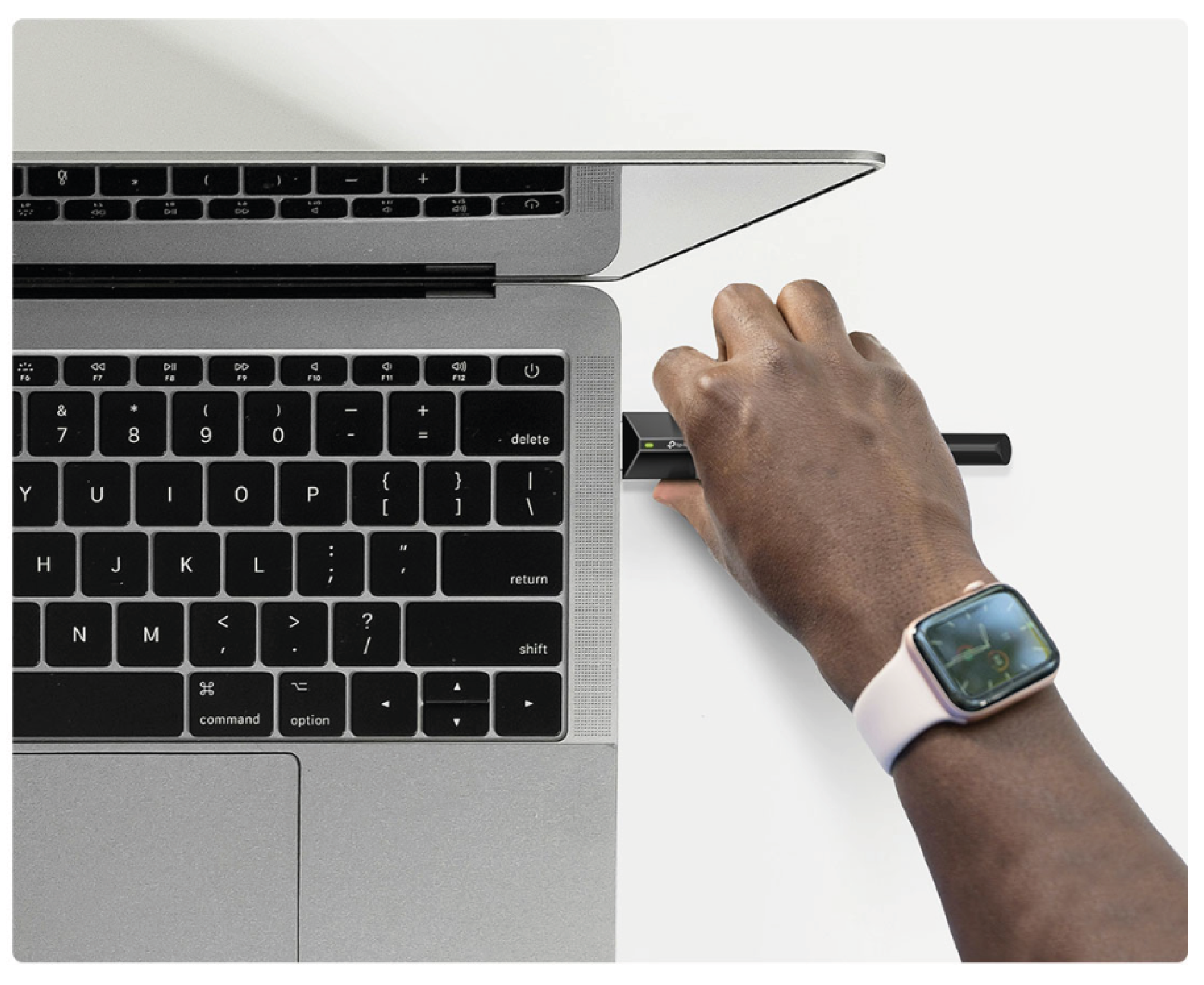 Bardzo mała obudowa adaptera UB500 Plus pozwala na podłączenie go do dowolnego portu USB i pozostawienie w nim bez znaczenia czy podróżujesz lub używasz go w domu.