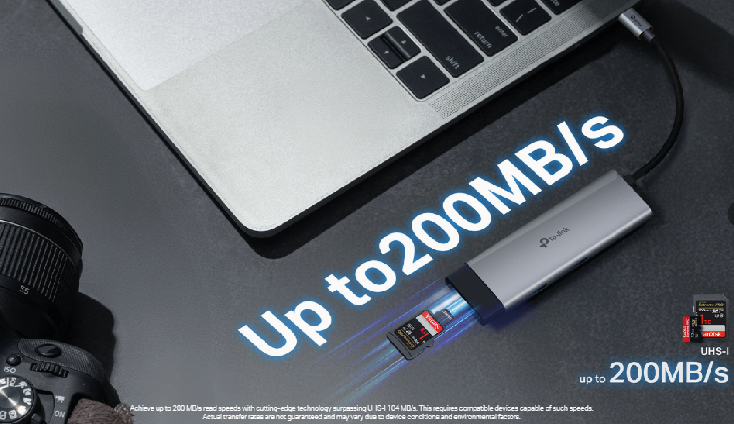Przenoś dane korzystając z kart SD i microSD UHS-I (z prędkością do 200 MB/s. ). Doświadcz super szybkiego transferu plików, który z łatwością poradzi sobie z przenoszeniem dużych plik znajdujących się na kartach pamięci.