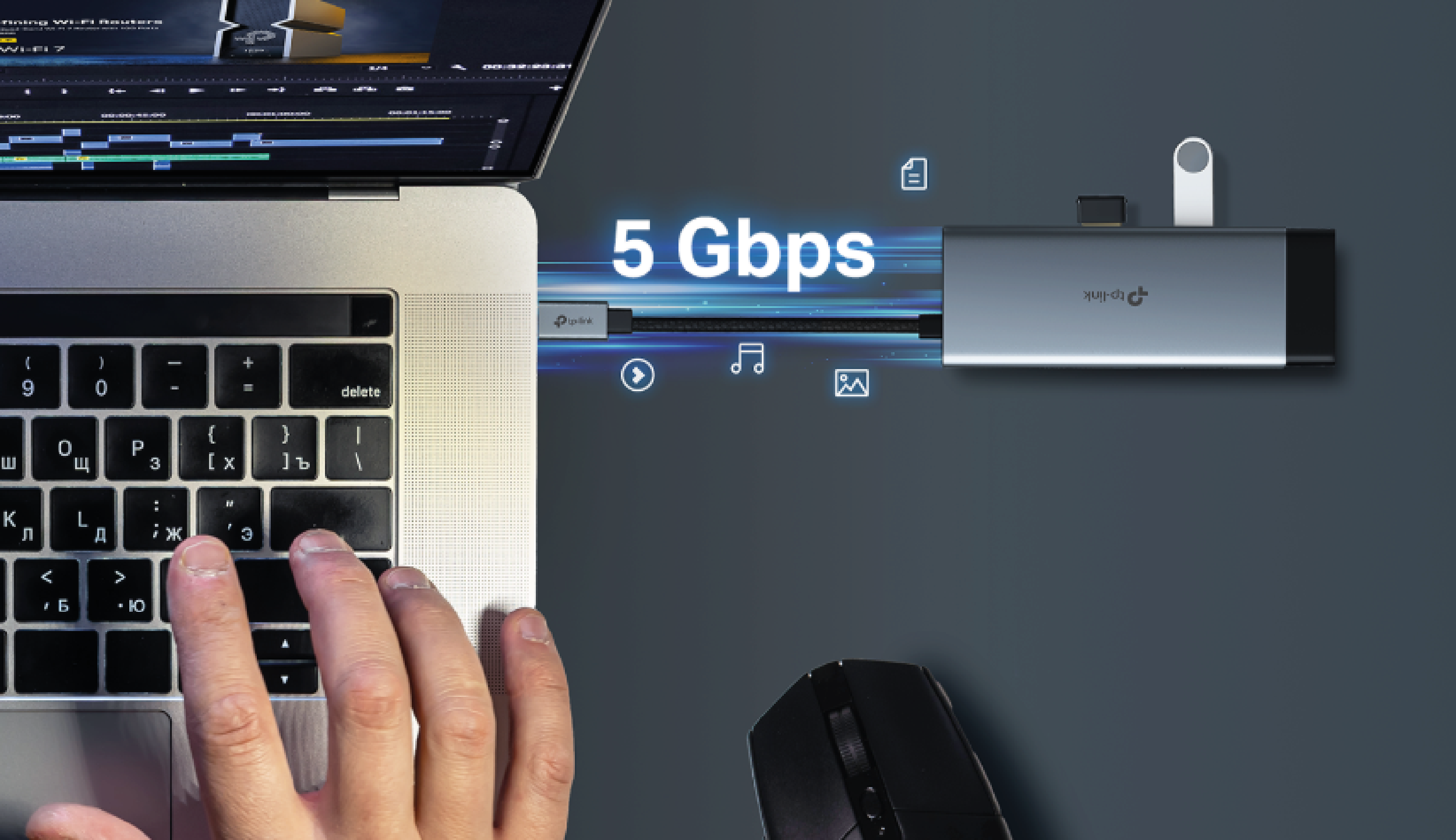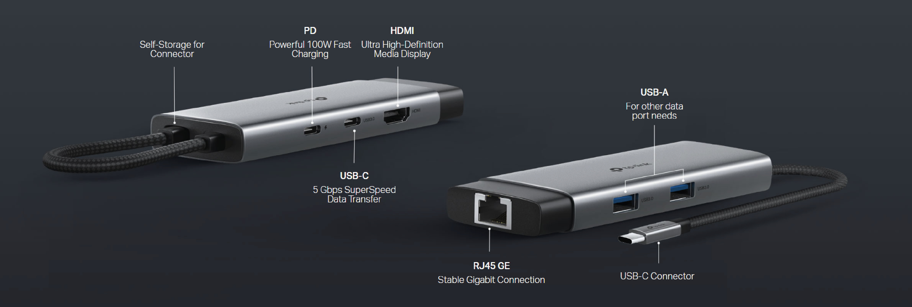 TP-Link UH6120C to kompaktowy hub USB typu C, który rozszerza możliwości laptopów, ultrabooków i komputerów stacjonarnych, oferując sześć dodatkowych portów w jednej obudowie. Urządzenie zostało wyposażone w trzy porty USB 3.0 umożliwiające szybki transfer danych z prędkością do 5 Gb/s, port HDMI obsługujący obraz w rozdzielczości 4K UHD, port RJ45 Gigabit Ethernet zapewniający stabilne połączenie przewodowe o prędkości do 1000 Mb/s oraz port USB-C Power Delivery do ładowania urządzeń z mocą do 100 W.