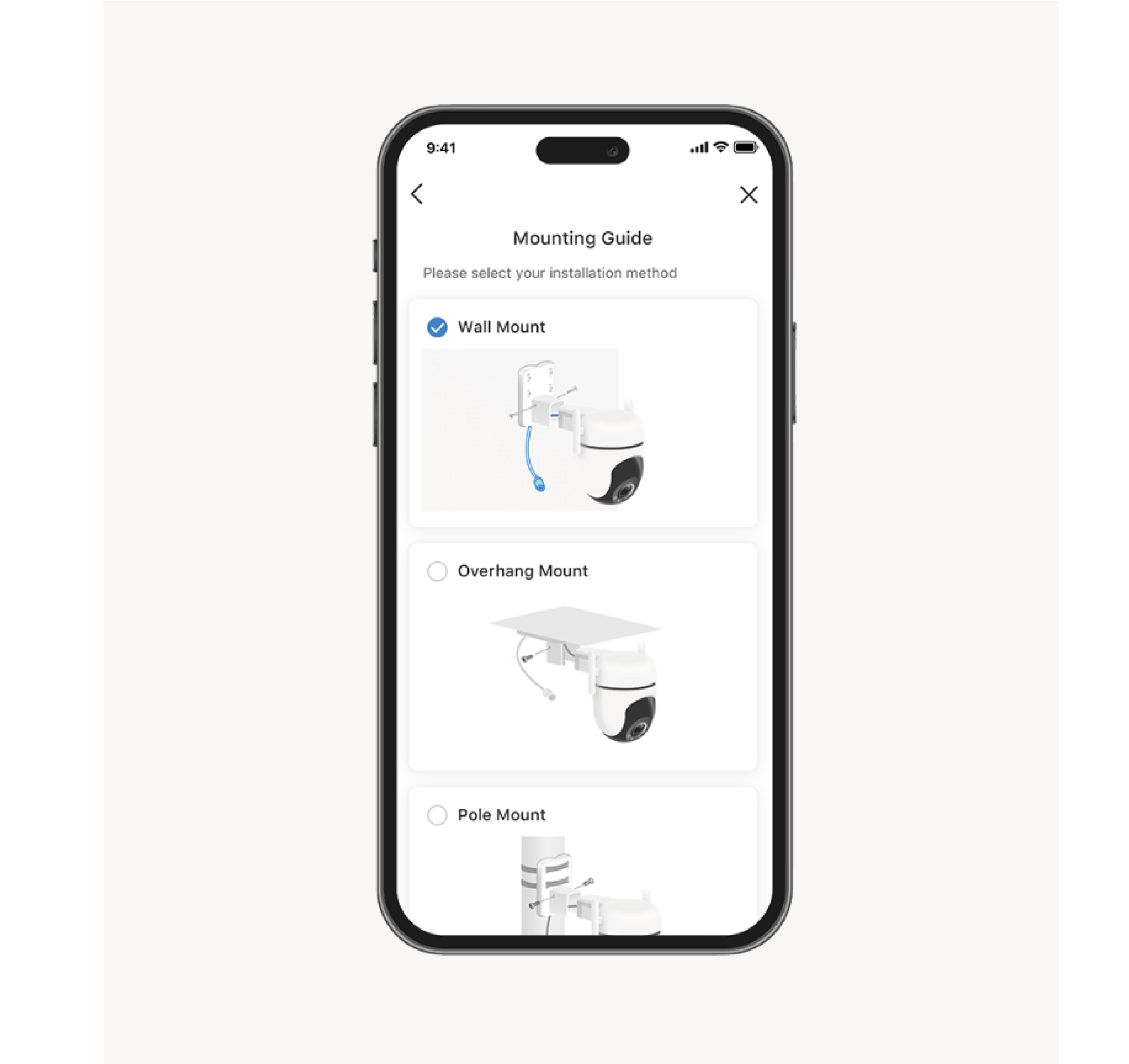 Postępuj zgodnie ze szczegółowymi instrukcjami w aplikacji Tapo i wybierz odpowiednie miejsce oraz kąt montażu.