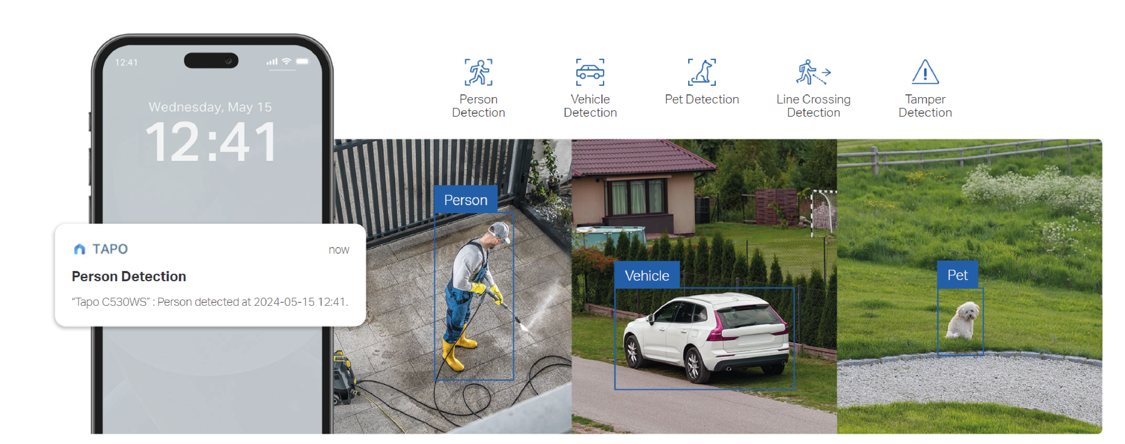 TP-Link Tapo C530WS to zewnętrzna, obrotowa kamera Wi-Fi 2K QHD (2560 × 1440 px), zapewniająca pełny monitoring posesji. Dzięki funkcji obrotu w poziomie i pionie eliminuje martwe strefy, a przetwornik Starlight i tryb nocny w kolorze gwarantują wyraźny obraz także po zmroku. Kamera obsługuje inteligentne rozpoznawanie osób, pojazdów i zwierząt, posiada wbudowany mikrofon i głośnik do dwustronnej komunikacji oraz slot na kartę microSD. Solidna konstrukcja z klasą IP66 sprawia, że idealnie nadaje się do pracy na zewnątrz w każdych warunkach.