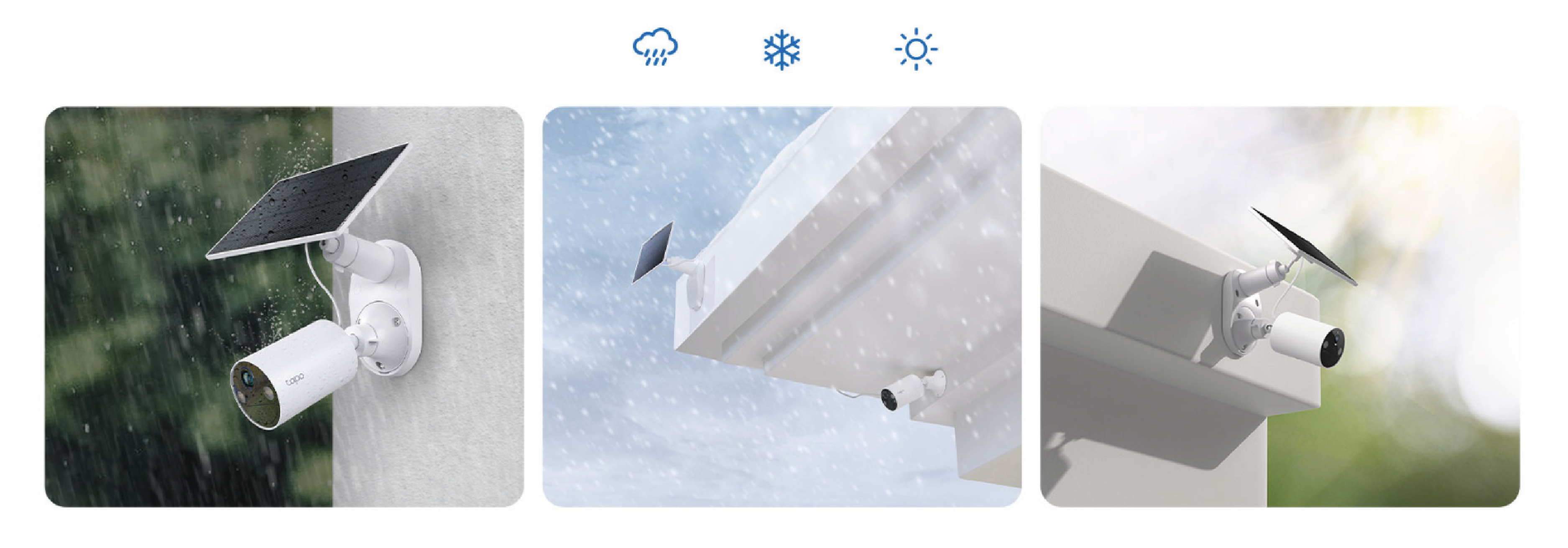 Obudowa Tapo C410 KIT o klasie szczelności IP65 jest odporna na pył i wodę, dzięki czemu jest w stanie znieść trudne warunki panujące na zewnątrz, takie jak deszcz, śnieg, kurz, światło słoneczne oraz wiele innych. Urządzenie jest w stanie pracować w temperaturze od -20°C do 45°C.