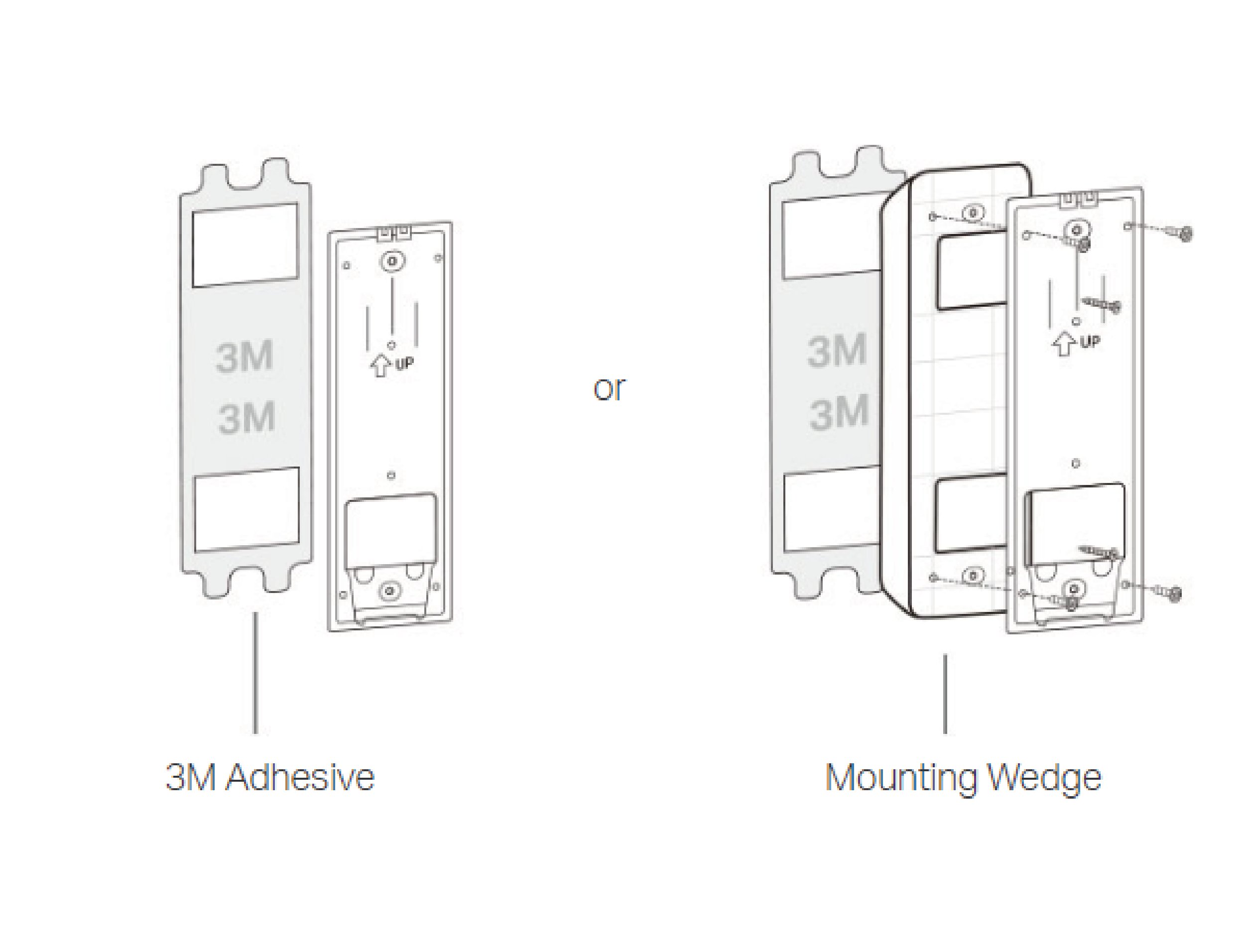 1. Przyklej dołączoną taśmę dwustronną do tylnej części wybranego wspornika lub klina. Jeśli użyjesz klina, przytwierdź wspornik do klina za pomocą śrub.