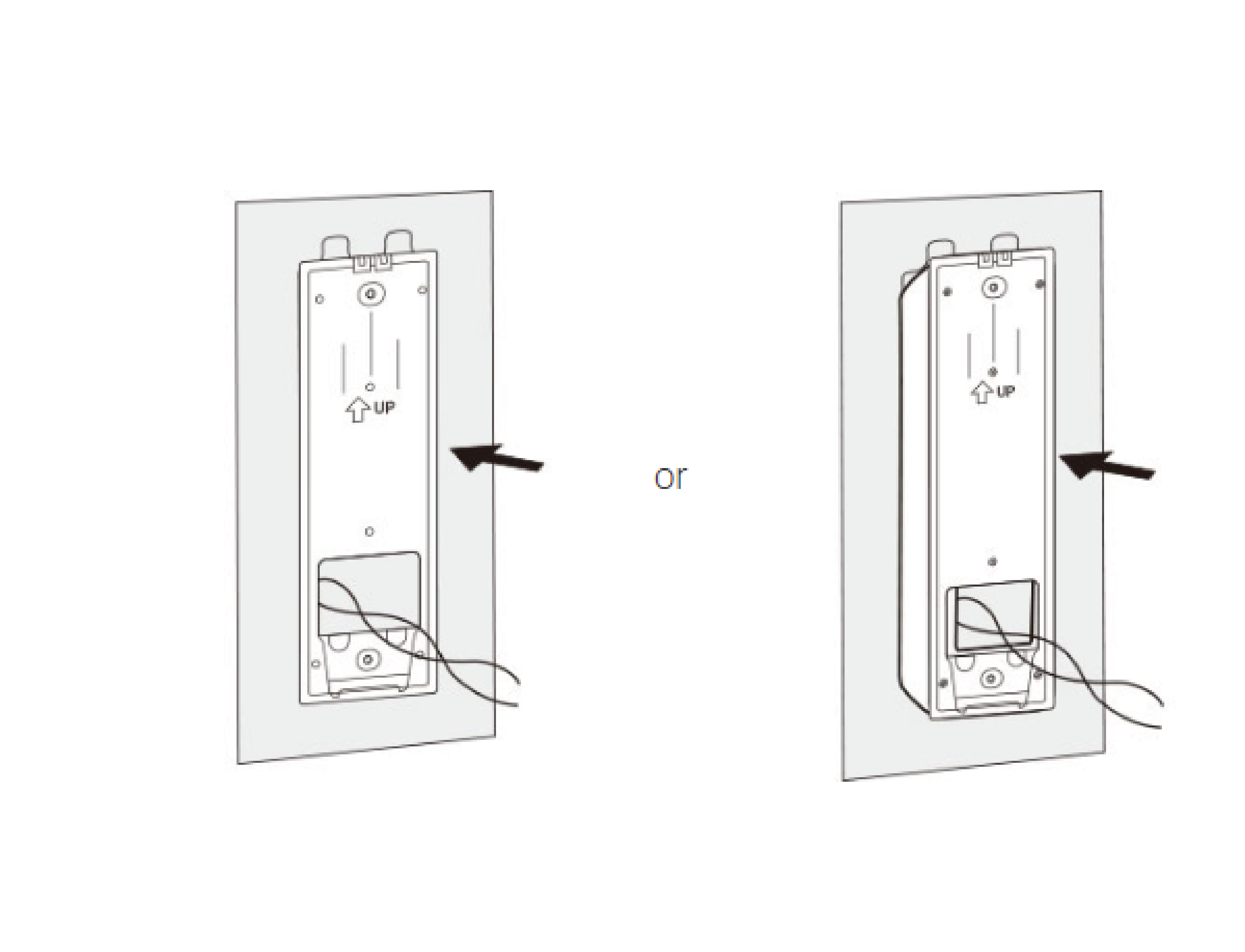 2. Przeprowadź przewody (jeśli istnieją) przez wspornik. Włóż dwie kotwy do otworów i użyj śrub, aby przytwierdzić wspornik do kotw.