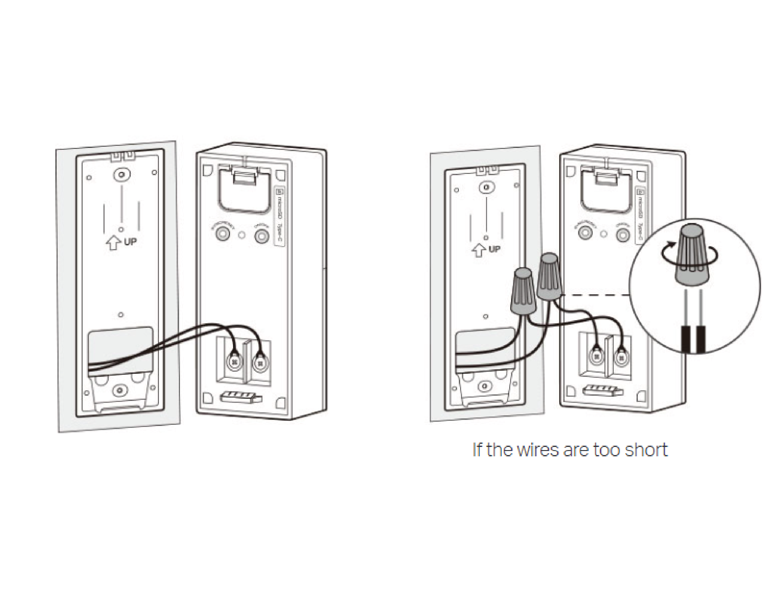 Podłącz przewody do dzwonka do drzwi i dokręć śruby. Zamontuj dzwonek do drzwi na wsporniku i włącz bezpiecznik.