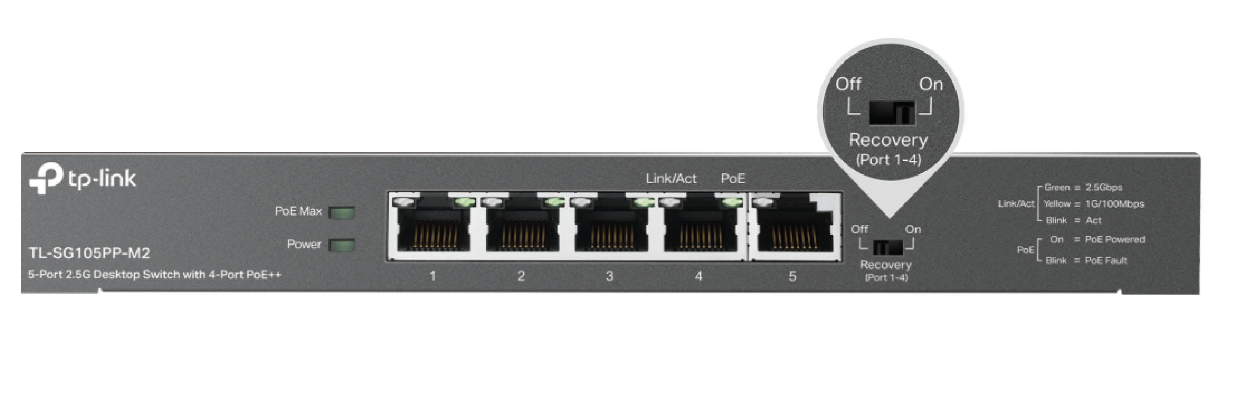 Tryb Recovery umożliwia automatyczne wykrywanie i restartowanie urządzeń PoE, takich jak kamery i punkty dostępowe, gdy przestaną działać lub odpowiadać. Zapomnij o ręcznym monitorowaniu i ponownym uruchamianiu urządzeń.