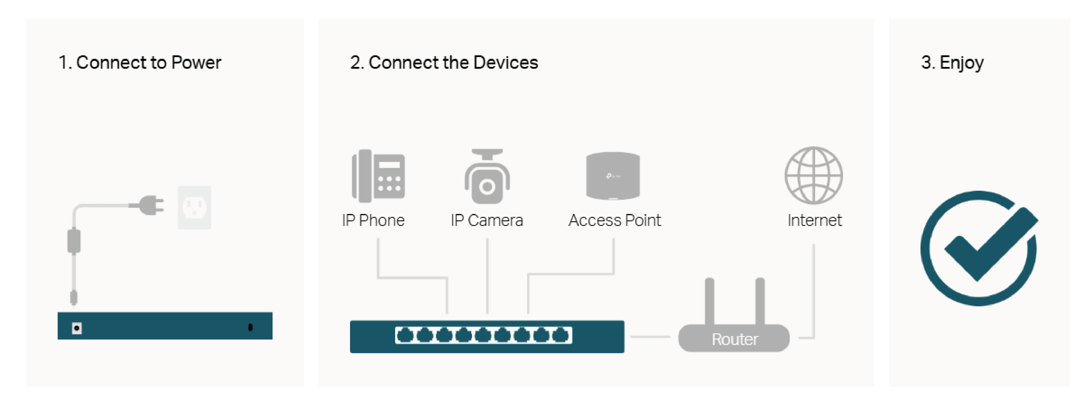 Przełącznik TL-SG1210PP zgodny ze standardami PoE IEEE 802.3af/at/bt, oferuje łączne zasilanie PoE do 123W (do 30W na portach PoE+ i do 60W na portach PoE++). Gdy przekroczona zostanie całkowita moc 123W, wtedy funkcja inteligentnego zarządzania energią wyłączy zasilanie portów o niższym priorytecie, aby uchronić urządzenia przed uszkodzeniami.