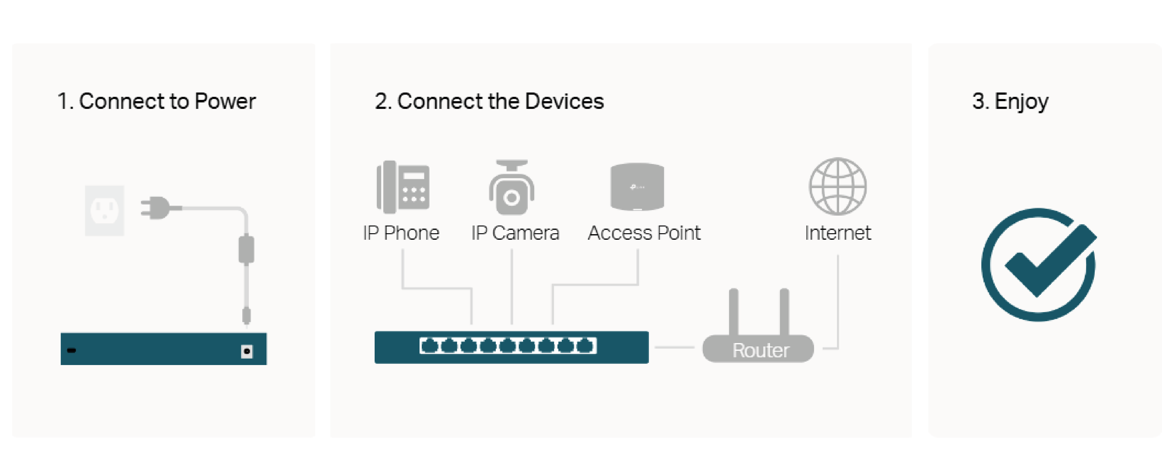 Przełącznik LS106LP zgodny ze standardami PoE IEEE 802.3af/at oferuje łączne zasilanie PoE do 41 W (do 30W na każdym porcie PoE*). Gdy przekroczona zostanie całkowita moc 41 W, wtedy funkcja inteligentnego zarządzania energią wyłączy zasilanie portów o niższym priorytecie, aby uchronić urządzenia przed uszkodzeniami.