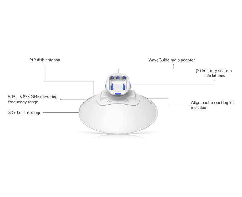 Oferowany produkt to antena kierunkowa przystosowana do pracy w częstotliwości 5150 - 6875 MHz. Średnica głównej wiązki wynosi od 5,8° do 9° zarówno w pionie, jak i poziomie. Kierunkowy przebieg sprawia, że UISP Dish Mini najlepiej sprawdzi się w połączeniach typu punkt-punkt (PTP). Produkt jest przystosowany do bezpośredniego zamontowania na nim radia: Wave-MLO5-, AF-5XHD lub RP-5AC-Gen2.