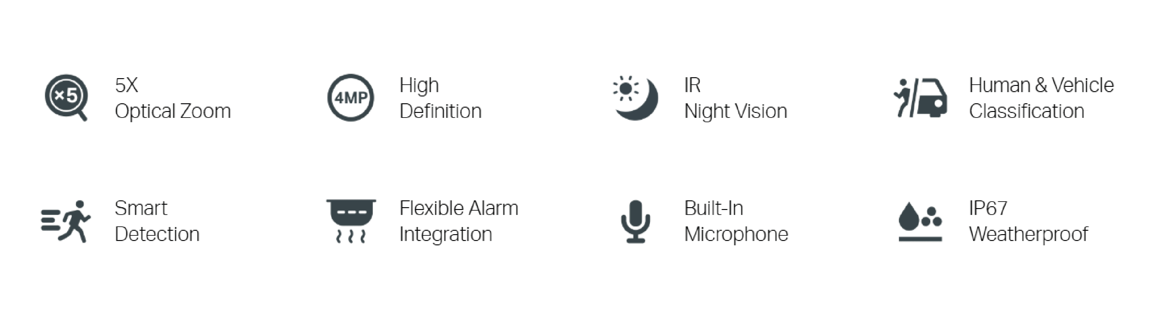• Smart IR: Dostosowuje dynamicznie doświetlenie podczerwone, aby zapobiegać nadmiernemu oświetleniu i odblaskom, zwiększając w ten sposób widoczność na różnych odległościach i wyraźniejszy obraz.