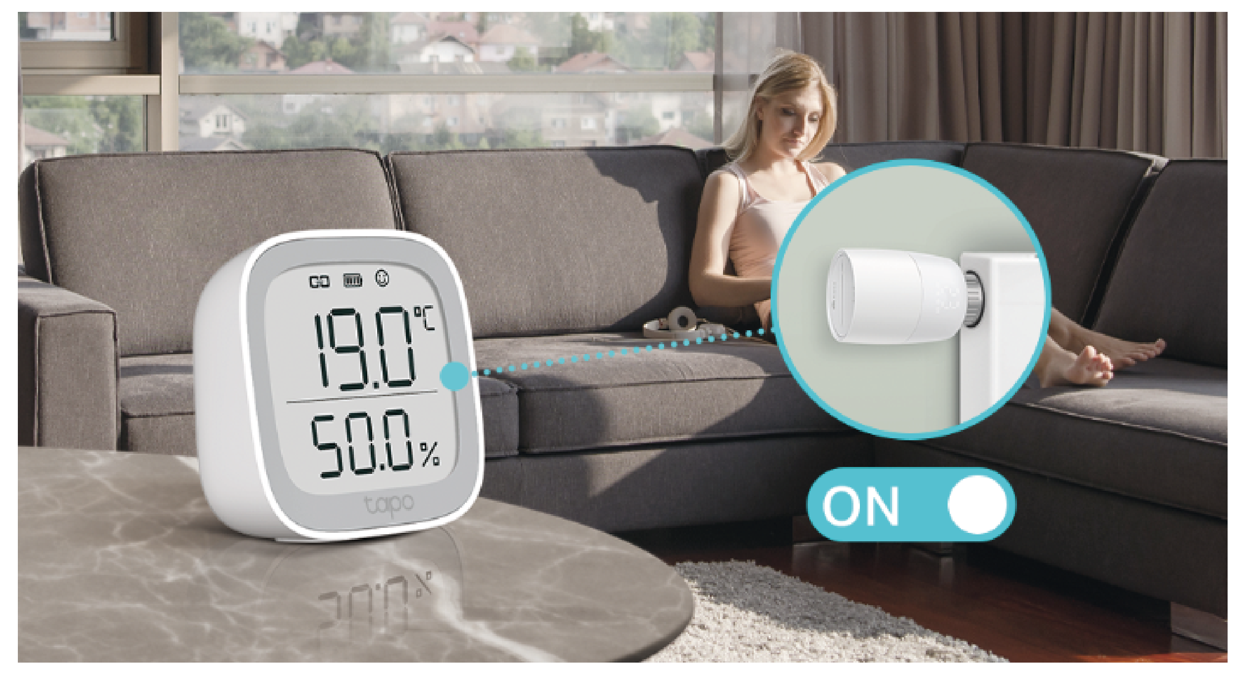 Wsparcie zewnętrznych czujników temperatury takich jak Tapo T310 i Tapo T315 umożliwia precyzyjną kontrolę temperatury w dowolnej częsci pokoju, poprzez automatyczną regulację zaworu termostatycznego na podstawie odczytów z tych czujników - nie tylko w pobliżu grzejnika.