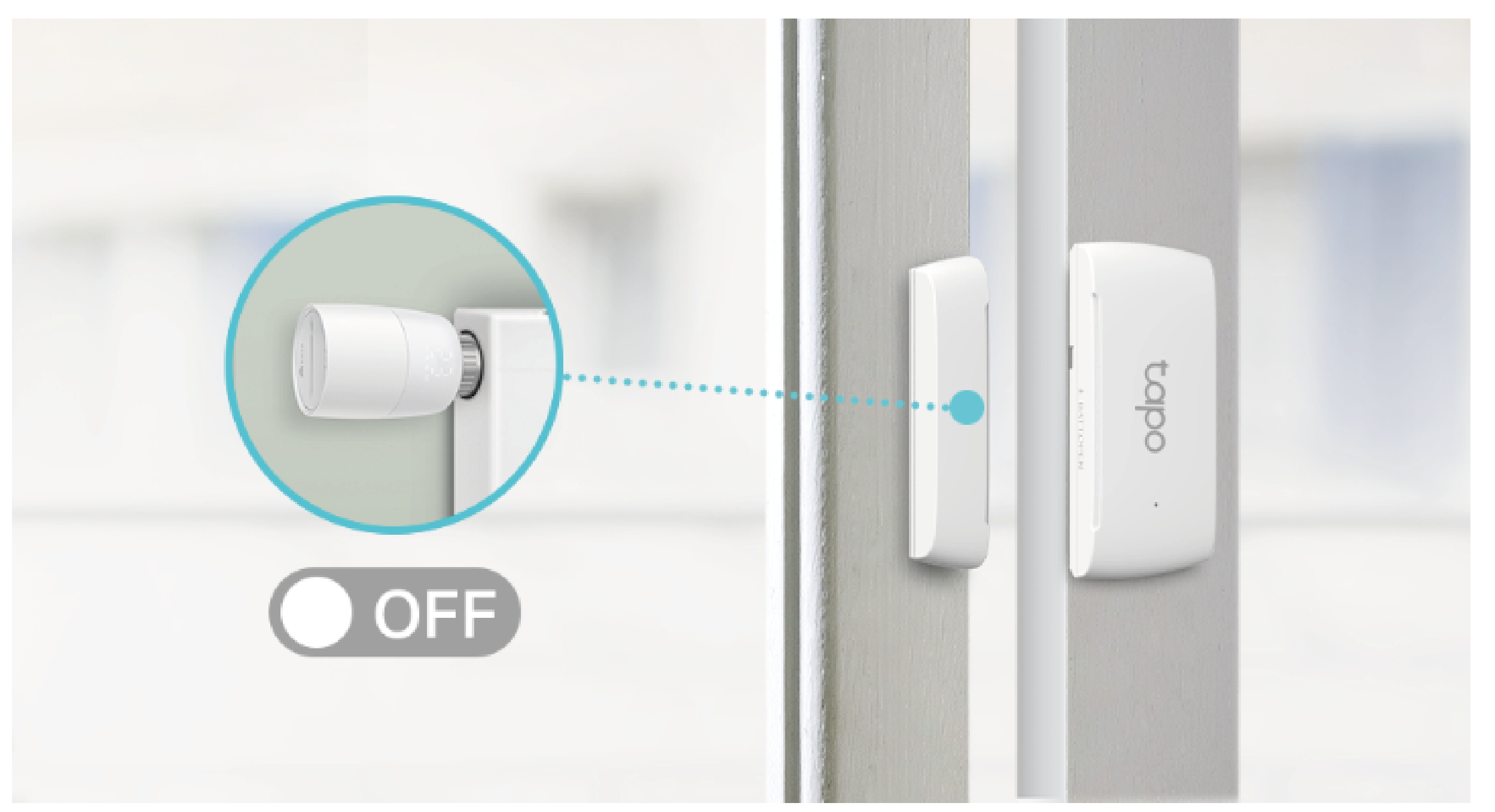 Termostat automatycznie wyłączy ogrzewanie i aktywuje Ochronę przed mrozem, gdy połączony czujnik magnetyczny (Tapo T110) zostanie wyzwolony. Dzięki temu rozwiązaniu oszczędzisz energię i utrzymasz bezpieczeństwo domu.