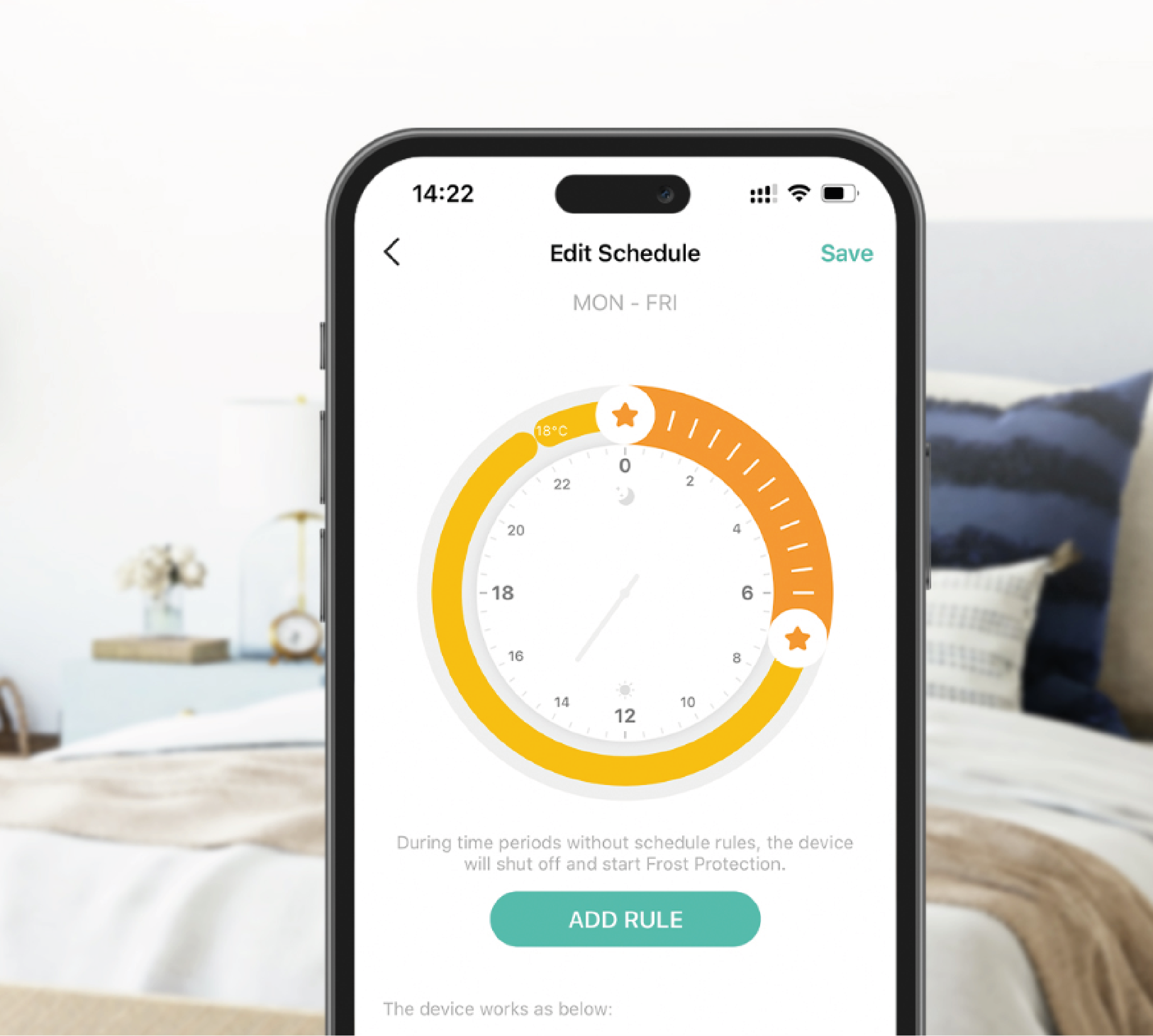 Ustaw harmonogram ogrzewania dla każdego pokoju na podstawie Twojej codziennej rutyny, oszczędzając przy tym na rachunkach za energie.