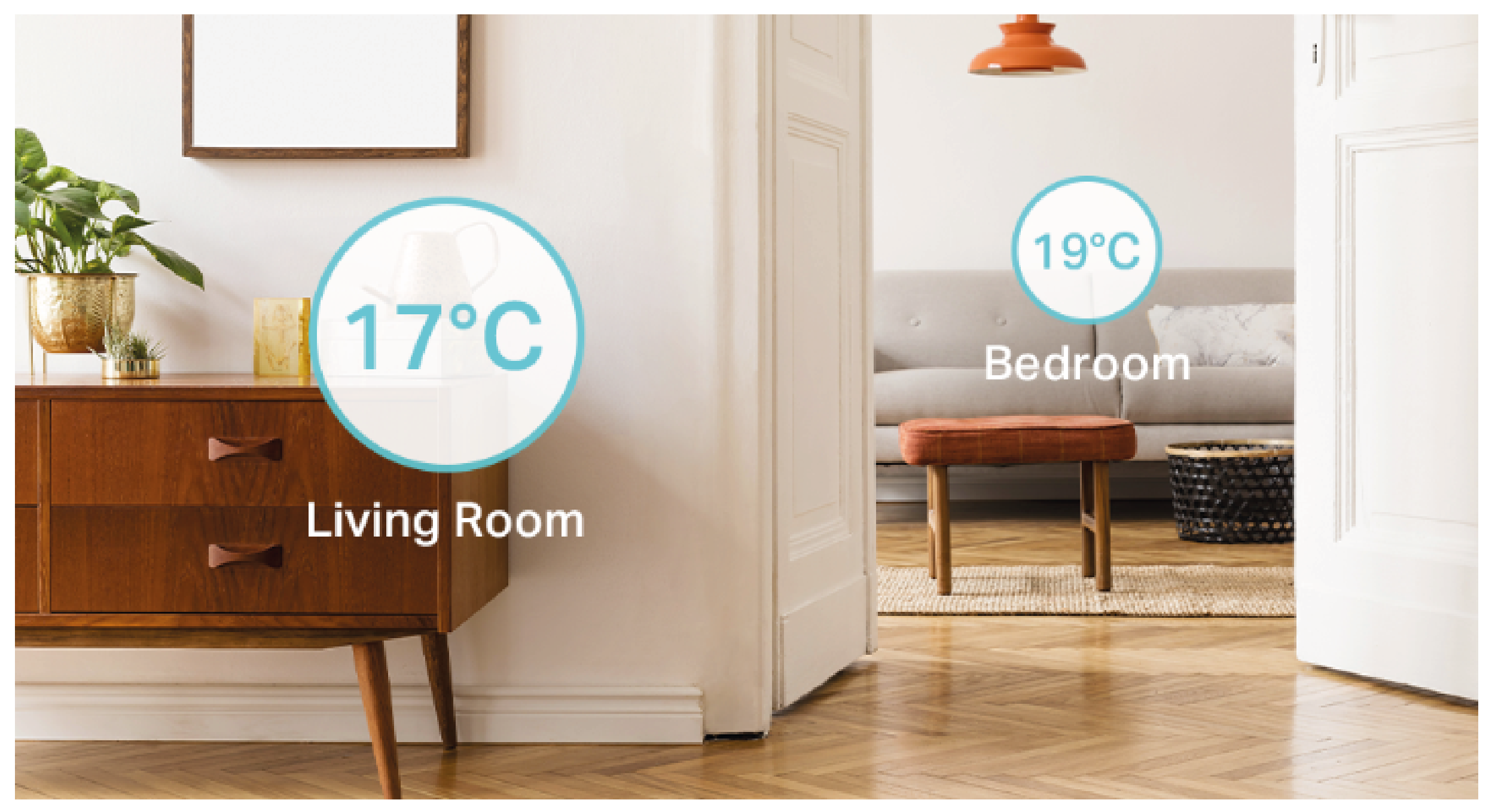 Ustaw doskonałą temperaturę indywidualnie dla każdego pokoju i wyznacz obszar ogrzewania swojego domu. Marnowanie energii na puste pokoje stanie się przeszłością.