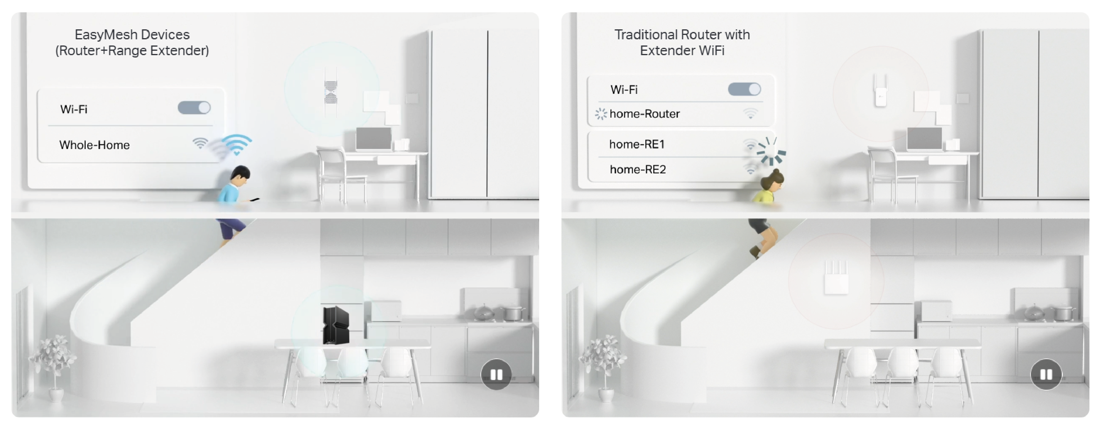Wzmacniacz sygnału RE235BE jest kompatybilny z EasyMesh. Połącz go z routerem EasyMesh, aby pozbyć się miejsc ze słabym sygnałem i utworzyć płynną sieć Wi-Fi w całym swoim domu.