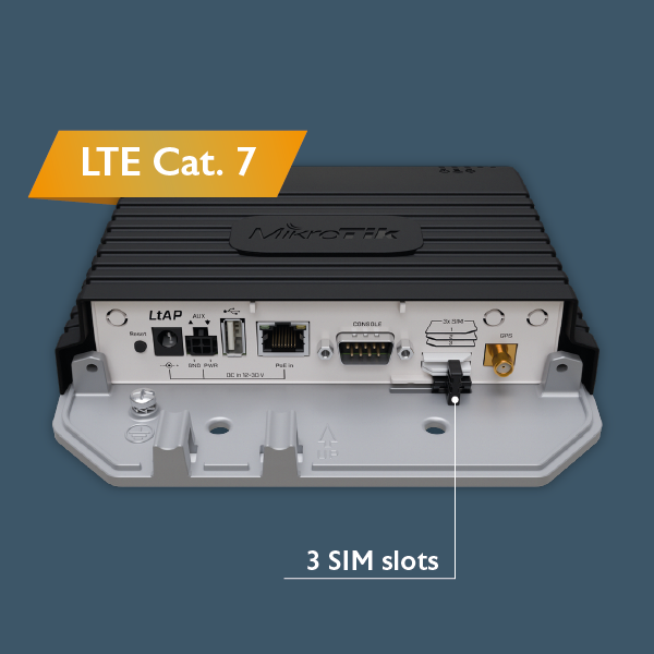 Oferowany produkt został wyposażony w modem LTE kat. 7, jest bezpośrednim następcą wcześniej sprzedawanego modelu. Maksymalna teoretyczna przepustowość podczas pobierania danych wynosi 300 Mb/s, a podczas wysyłania 100 Mb/s. Modem może agregować dwa pasma, pełną listę obsługiwanych częstotliwości znajdziesz w specyfikacji poniżej opisu. Wewnątrz obudowy znajdują się aż trzy sloty mini SIM, dzięki czemu możesz zastosować kart różnych operatorów. Jest to bardzo przydatne w branży transportowej, pozwala na ograniczenie kosztów roamingów jeżeli urządzenie ma poruszać się poza granicami. LtAP LTE7 kit obsługuje transmisję GPS i pozwoli ci śledzić lokalizację.