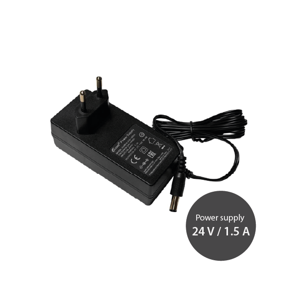 Oferowany produkt to standardowy zasilacz o napięciu wyjściowym 24 V DC i prądzie 1,5 A (moc ~ 36 W). Posiada standardowy wtyk DC 2,1 / 5,5 mm powszechnie stosowany w rozwiązaniach MikroTIka. Zasilacz możesz zastosować m. in. do L009, RB4011 czy RB5009.