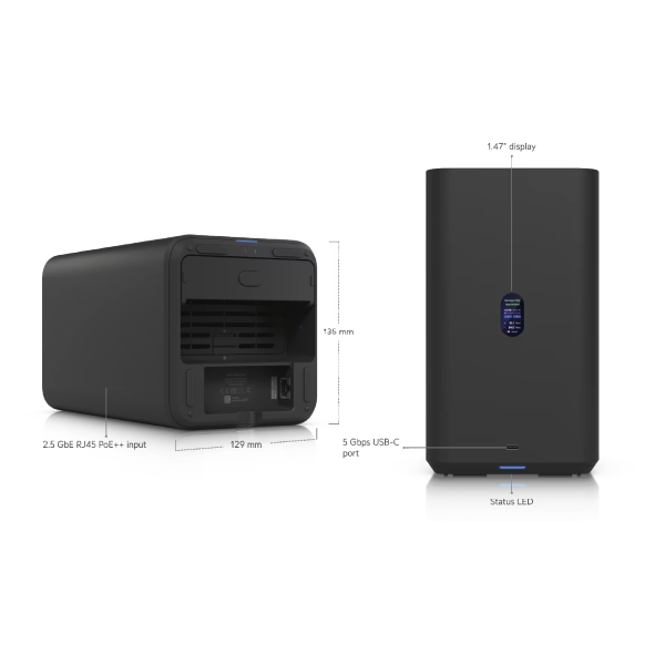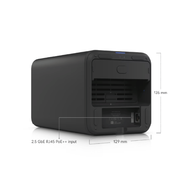 Ubiquiti UNAS 2 to serwer NAS wyposażony w 2 kieszenie na dyski twarde HDD 3.5". Wspiera RAID 1, szyfrowanie plików, tworzenie snapshotów i wiele innych, przydatnych funkcji. Posiada 1 port 2.5G Ethernet, umożliwia uzyskanie dużej przepustowości sieci lokalnej, co przekłada się na szybsze pobieranie / wysyłanie plików. Urządzenie posiada obudowę typu desktop, zasilane może być poprzez PoE++ (802.3bt), w zestawie znajdziesz odpowiedni zasilacz. UNAS 2 posiada dodatkowy port USB typu C, który wspiera przepustowość do 5 Gb/s.