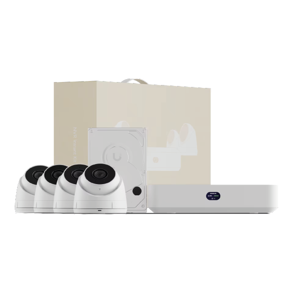 Oferowany produkt to zestaw przeznaczony do stworzenia monitoringu w oparciu o system UniFi Protect. Umożliwia korzystanie z podglądu na żywo i odtwarzania zapisanych nagrań używając konsoli UniFi Protect lub odpowiedniej aplikacji, w prosty sposób może zostać zunifikowany z innymi systemami, np. punktów dostępowych. W skład zestawu wchodzą 4 kamery, rejestrator z wbudowanym switchem PoE oraz dysk twardy o pojemności 1 TB. Jest to doskonały zestaw startowy, który w bardzo wielu przypadkach całkowicie wystarczy, np. zakładając montaż na każdej ścianie budynku o kształcie zbliżonym do prostokąta.