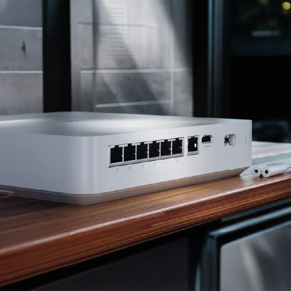 Dołączony w zestawie rejestrator jest w stanie obsłużyć maksymalnie do 6 kamer 4K, 8 kamer 2K lub 15 kamer HD, w razie potrzeby możesz więc dołożyć cztery dodatkowe kamery G5 Turret Ultra. Posiada 1 miejsce na dysk twardy, w zestawie znajdziesz dysk o pojemności 1 TB. UNVR Instant jest wyposażony w 7 portów 1G Ethernet, jeden z nich służy za port uplinkowy, na pozostałych znajduje się wyjście zasilania PoE (802.3af). Dzięki temu w mniejszych systemach monitoringu (do 6 kamer) nie jesteś zmuszony do korzystania z dodatkowego switcha, wystarczy sam rejestrator.