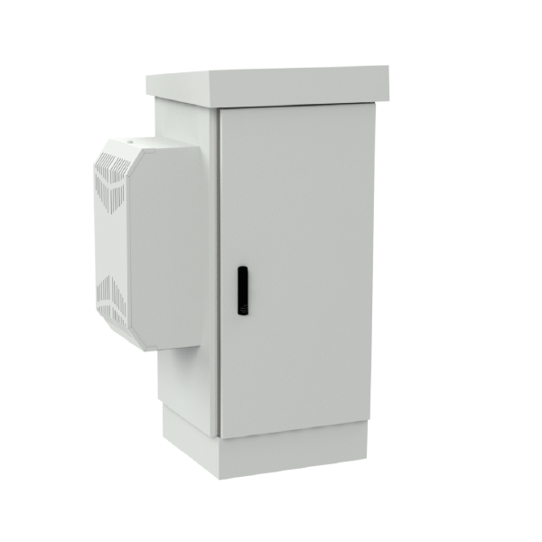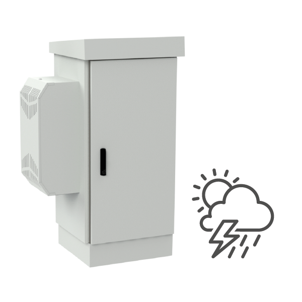 Szafa ma konstrukcję dwupłaszczową - posiada podwójne ściany, pomiędzy nimi znajduje się powietrze, które jest dodatkowym izolatorem termicznym chroniącym sprzęt znajdujący się wewnątrz. Wraz z produktem otrzymasz zintegrowany klimatyzator o mocy 720 W. Klimatyzator umożliwia schłodzenie wnętrza szafy, zapobiega przegrzewaniu się urządzeń oraz wydłuża ich żywotność.
