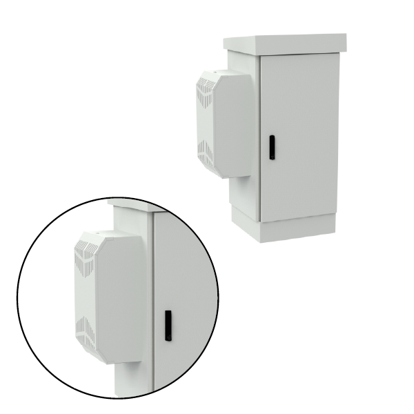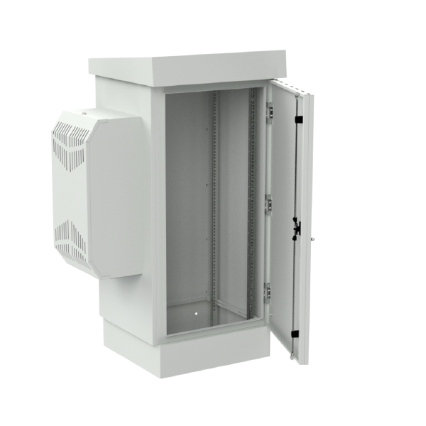 Dzięki zastosowaniu klimatyzatora szafa nie posiada otworów wentylacyjnych w dolnej części (w przeciwieństwie do standardowych, zewnętrznych szaf wolnostojących) co przekłada się na stopień ochrony IP65, a więc wyższy niż w szafach bez klimatyzacji (IP54). Konstrukcja została zabezpieczona przed wnikaniem wody i pyłów. Jest to szafa wolnostojąca, możesz ją odpowiednio zakotwić do podłoża (np. betonowego) osadzić na studni telekomunikacyjnej lub na postumencie (sprzedawany osobno).
